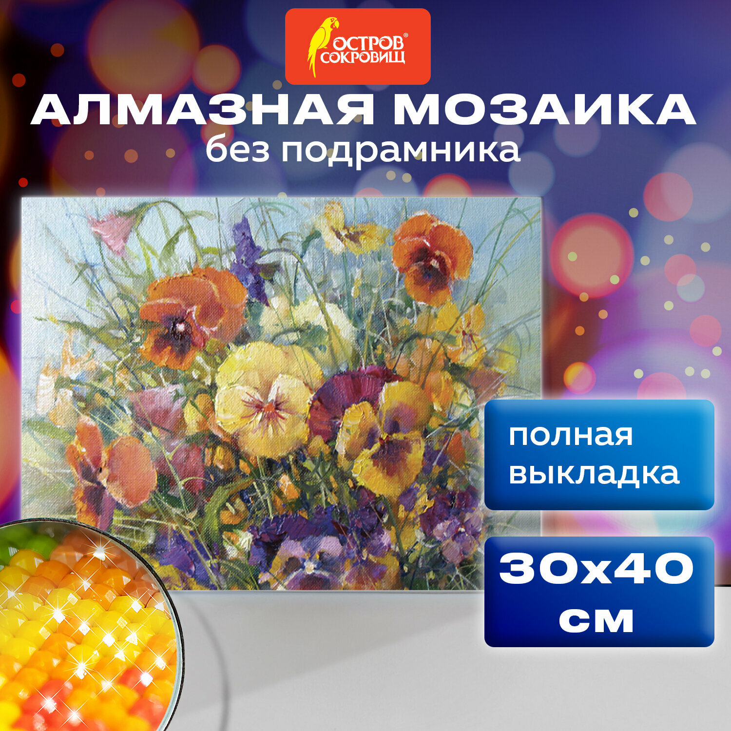 Отзывы на Картина стразами (алмазная мозаика) 30*40см, остров сокровищ "Букет с анютками", без подрам., 662574