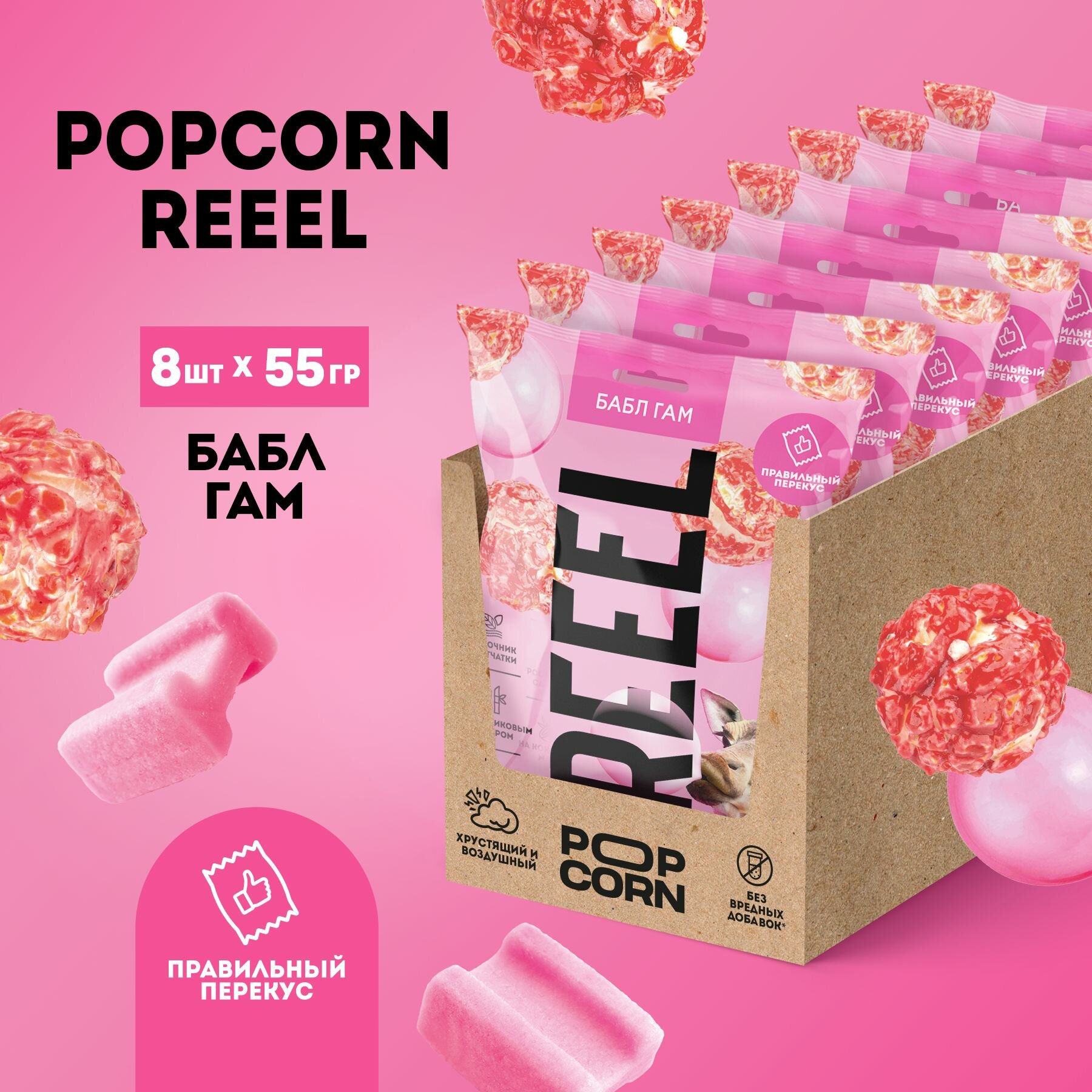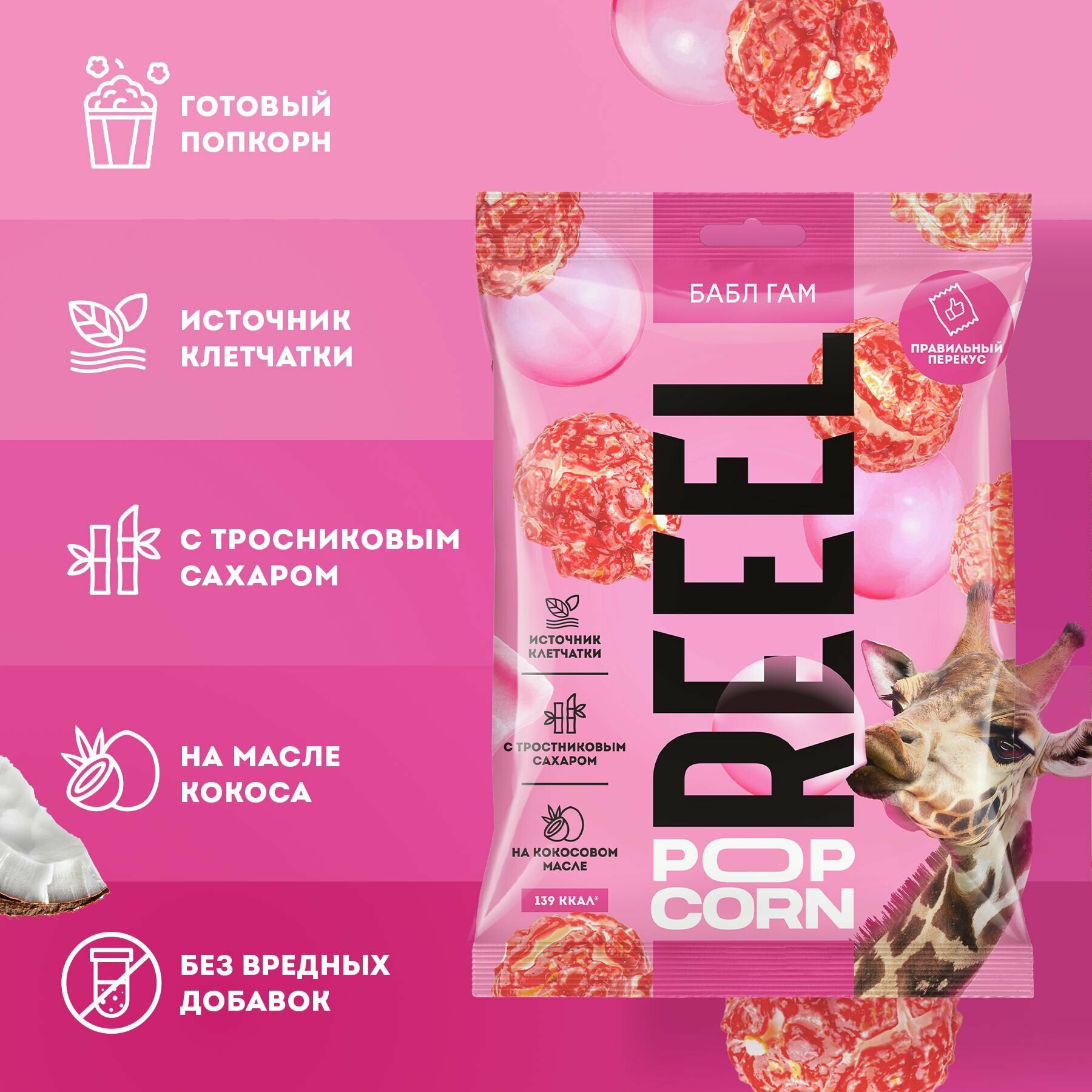 Попкорн готовый сладкий REEEL Бабл-гам, 8 шт со вкусом жвачки без вредных добавок информация:
