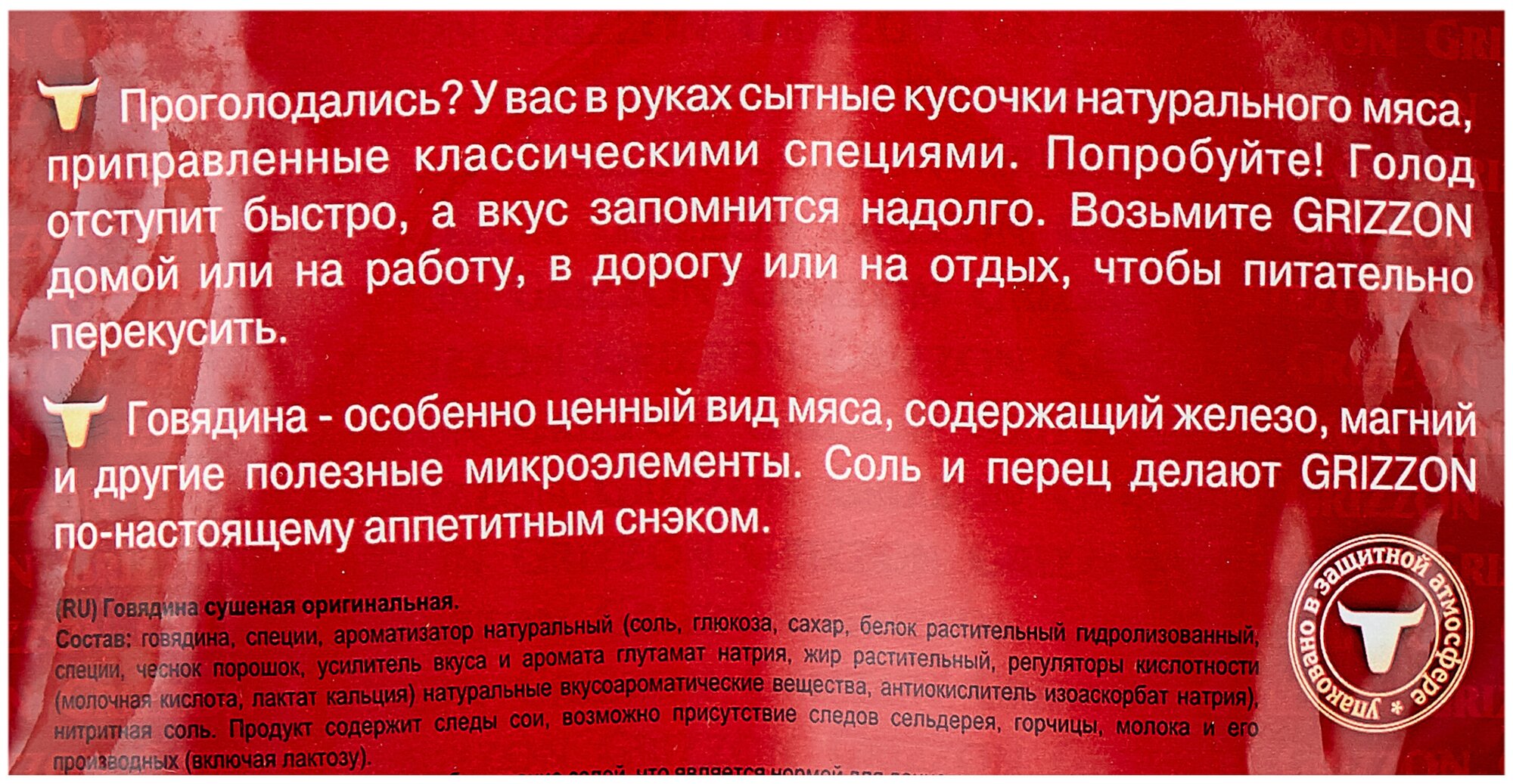 Говядина сушеная Оригинальная , 36г х 10шт GRIZZON информация: