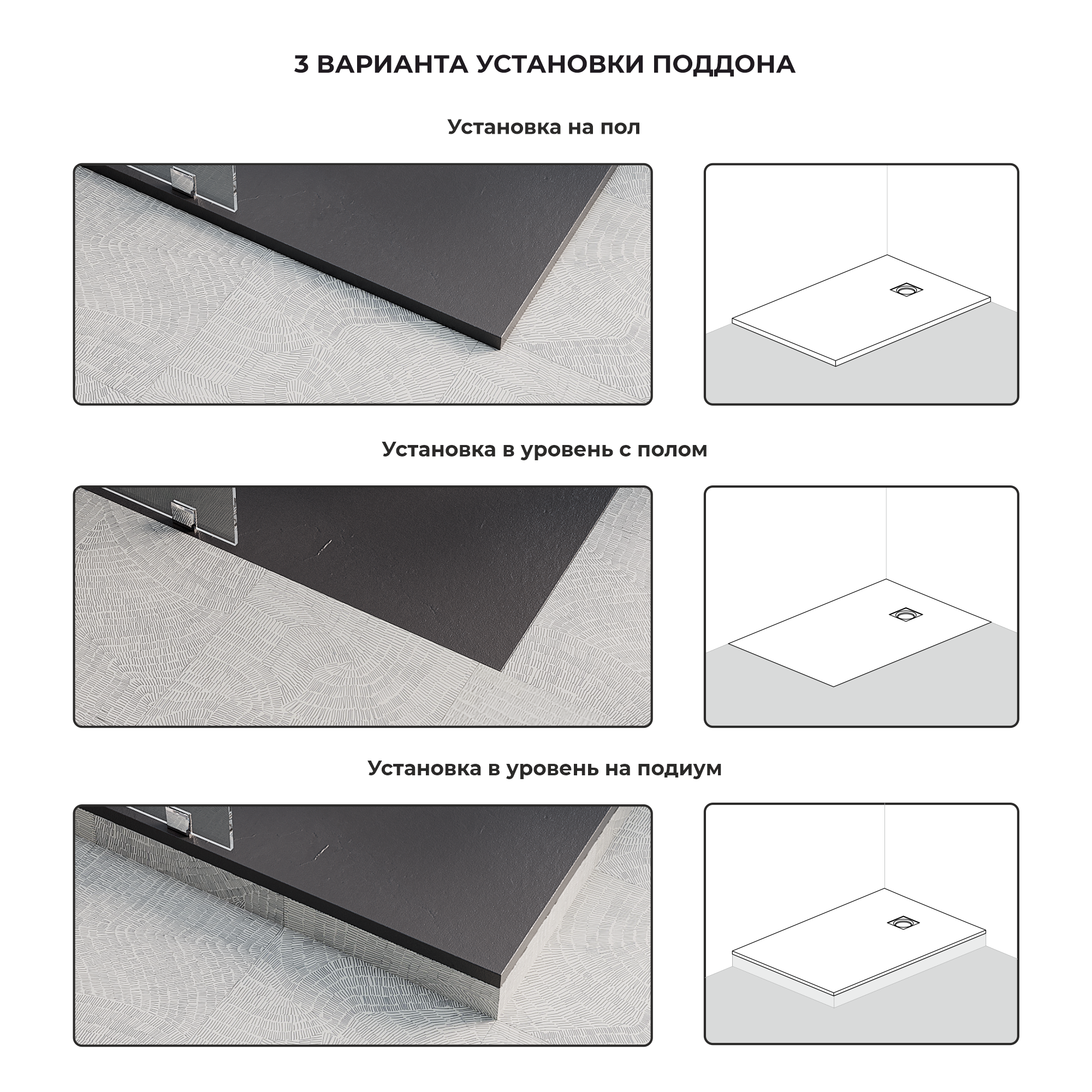 Отзывы на Поддон для душа 120х80 см., Ulitka Lava черный, литьевой мрамор