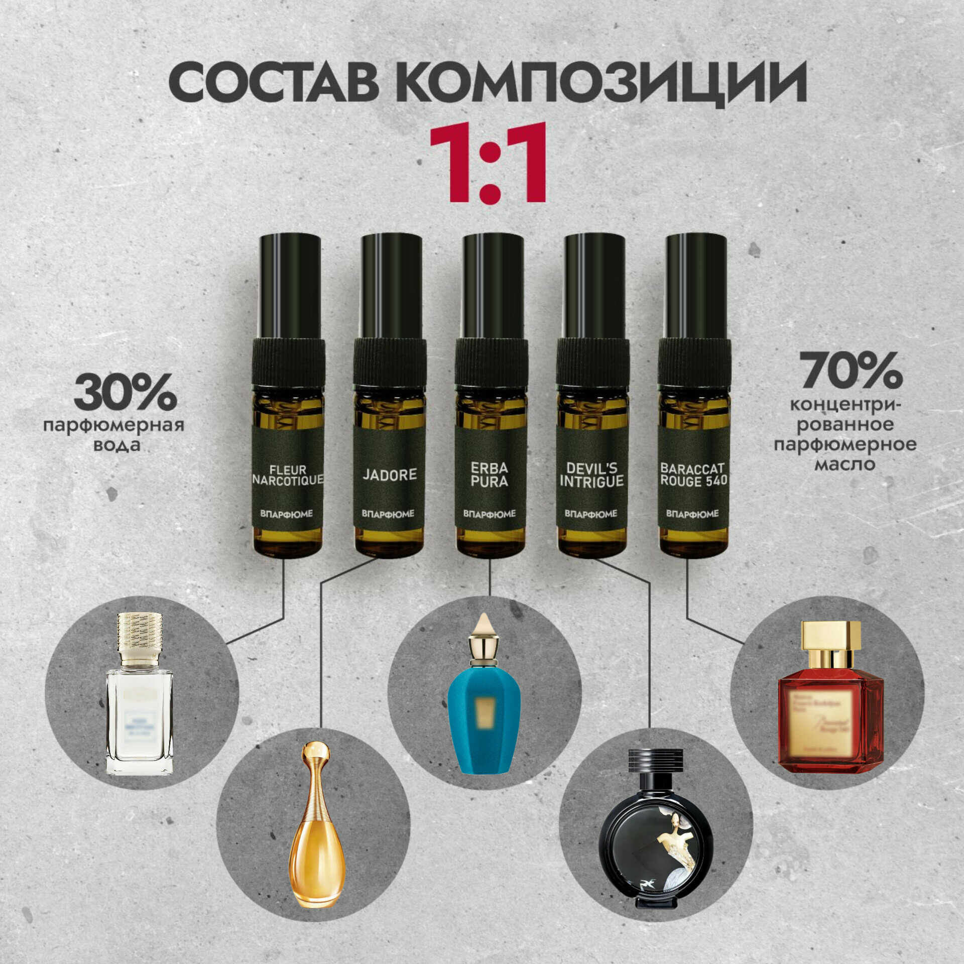 | Состав | 70% парфюмерное масло, 30% парфюмерная вода ЛЮКС без запаха спирта |