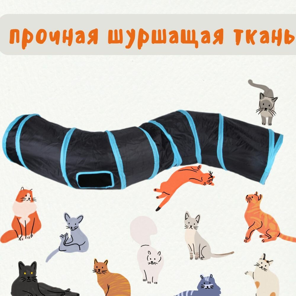 Тоннель для кошек игровой S образной формы 130 см, тоннель черный, набор игровой 700 ₽