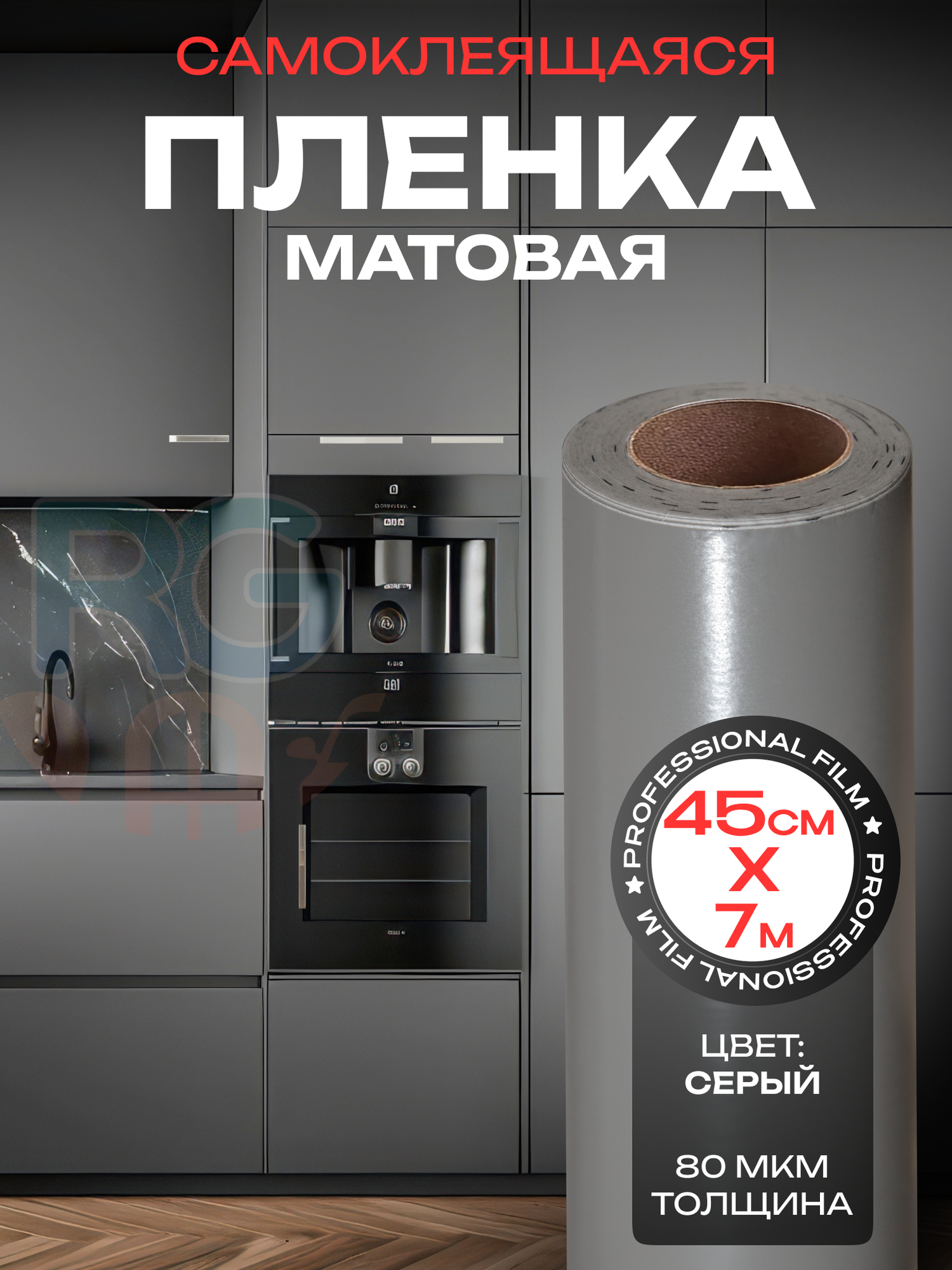 10 цен на Пленка самоклеющаяся для мебели без пузырей. Матовая пленка для мебели в интерьере. Reton Group 45х7 м, серая