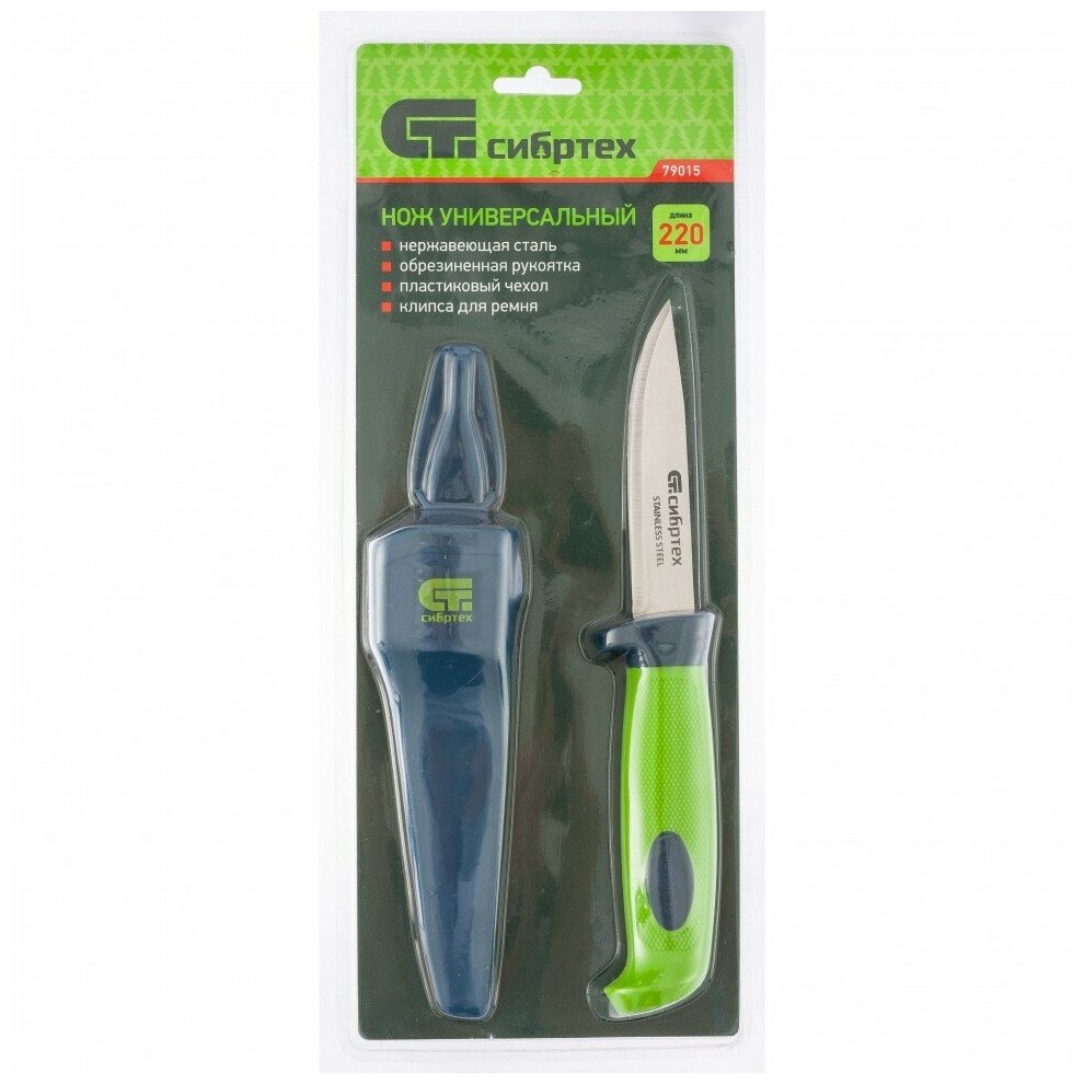 Нож универсальный с чехлом, обрезиненная рукоятка, 220 мм, лезвие 100 мм Сибртех информация: