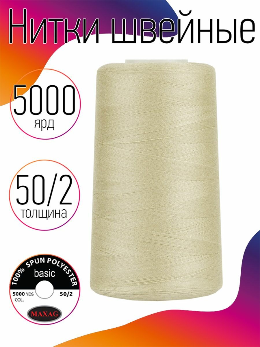 Нитки швейные 50/2 полиэстер 5000 ярд цв.610 экрю MAX информация: