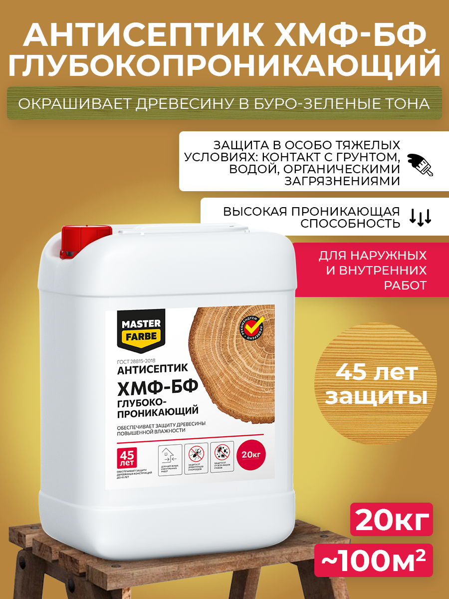 Антисептик ХМФ-БФ MASTERFARBE глубоко проникающий защита древесины повышенной влажности, водоотталкивающий 20 кг информация: