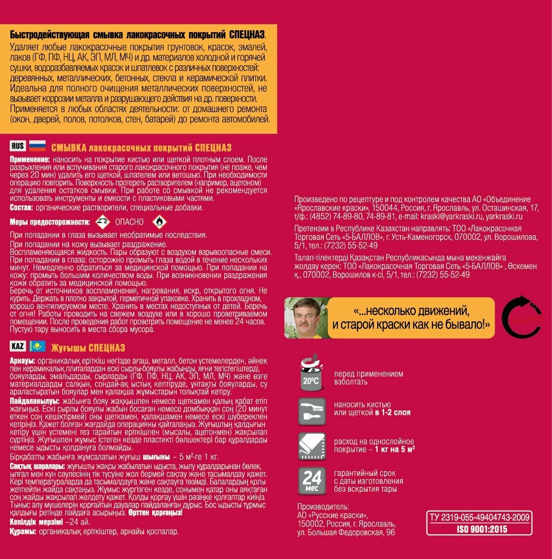 Смывка лакокрасочных покрытий спецназ бутылка 0,55 кг информация: