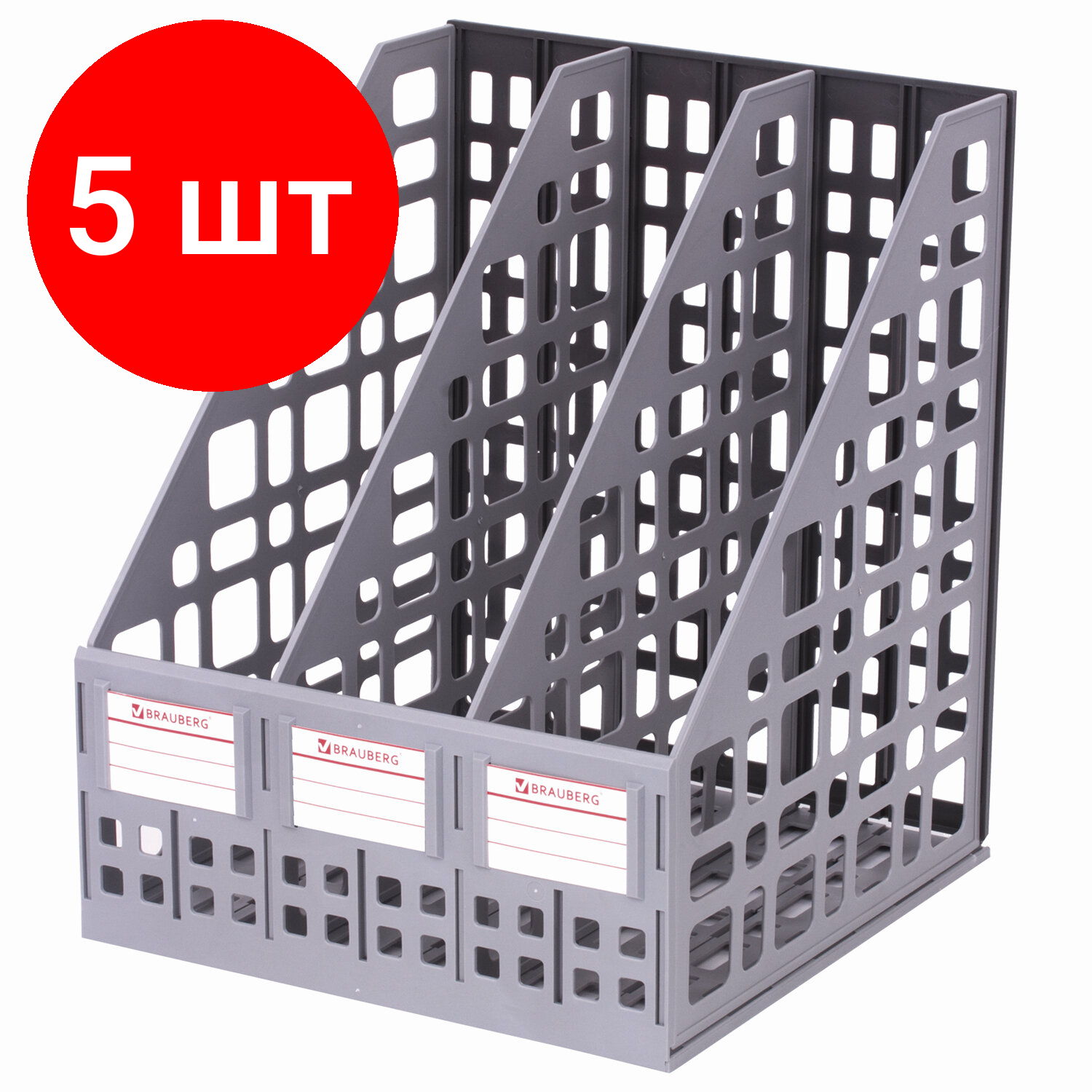 Комплект 5 шт, Лоток вертикальный для бумаг BRAUBERG "MAXI Plus", 240 мм, 3 отделения, сетчатый, сборный, серый, 237014 информация: