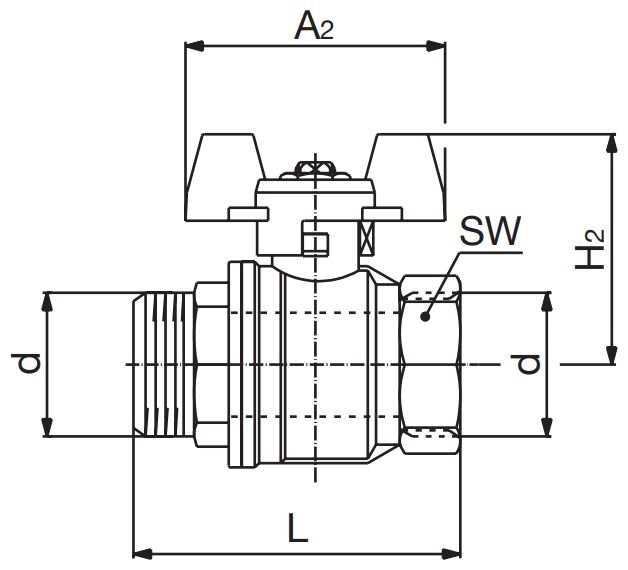 Шаровый кран Oventrop Optiball, ручка-бабочка, ВР-НР 3/4"