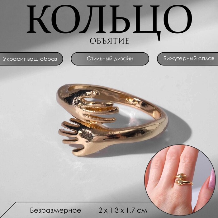 Отзывы на Кольцо женское, Queen Fair, Объятие - руки из металла, цвет золотой, безразмерное, 1 шт.