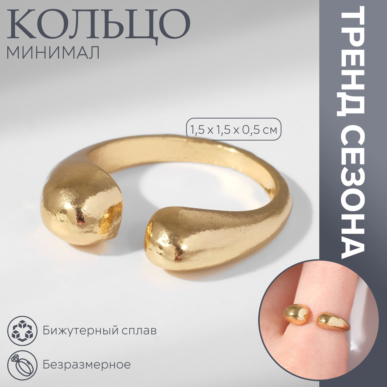 10 цен на Кольцо незамкнутое женское Queen Fair - Минимал, цвет золотой, безразмерное, 1 шт.