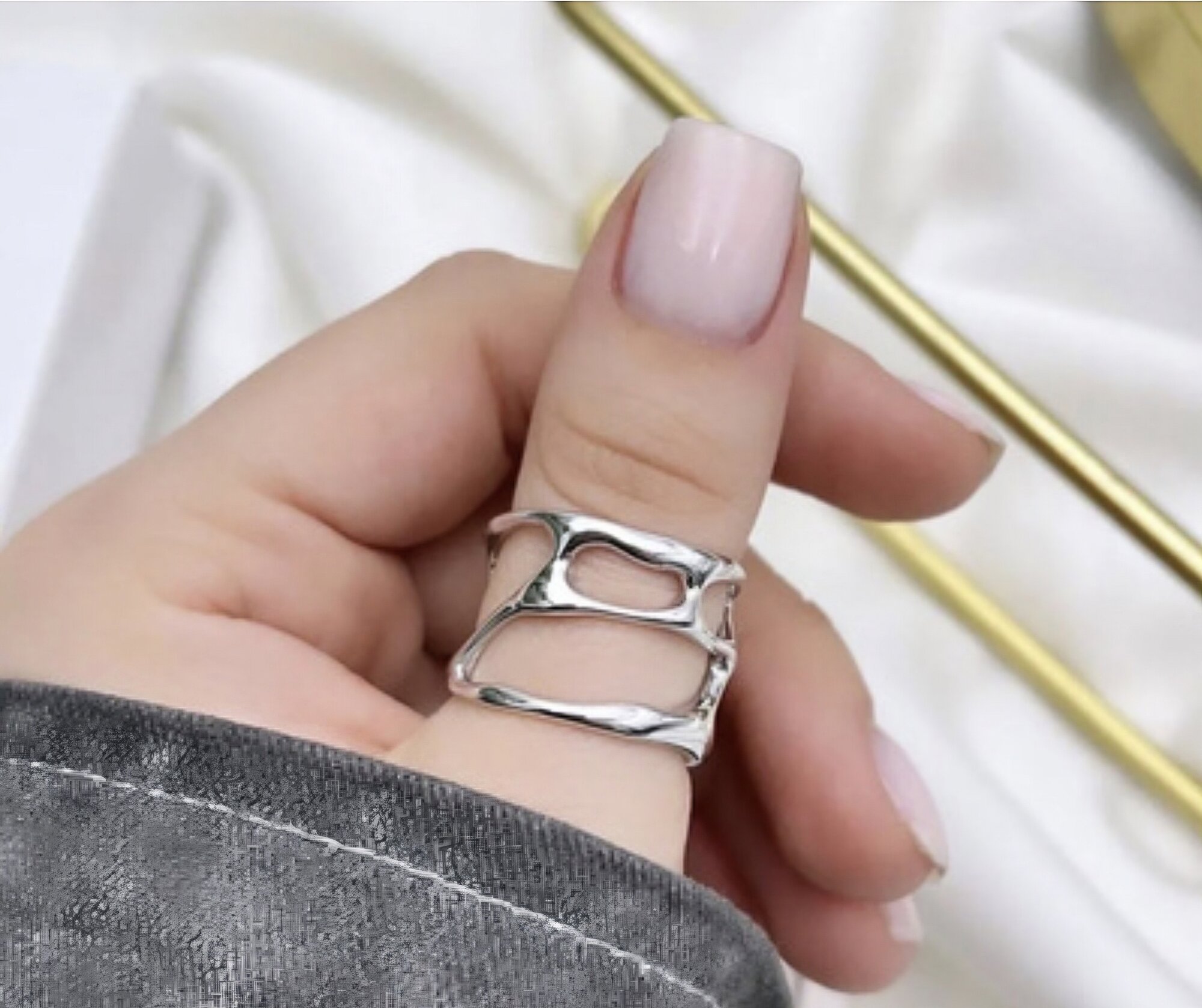 Женское безразмерное кольцо liquid, абстрактное, геометричное, серебристое, от Reniva 416 ₽