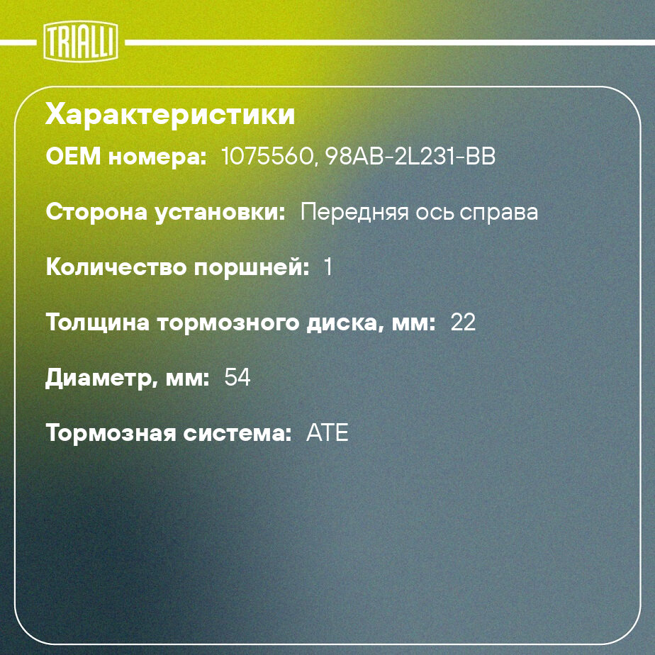 Суппорт тормозной для автомобилей Ford Focus I (98-) передний правый d=54мм CF 102002 TRIALLI информация: