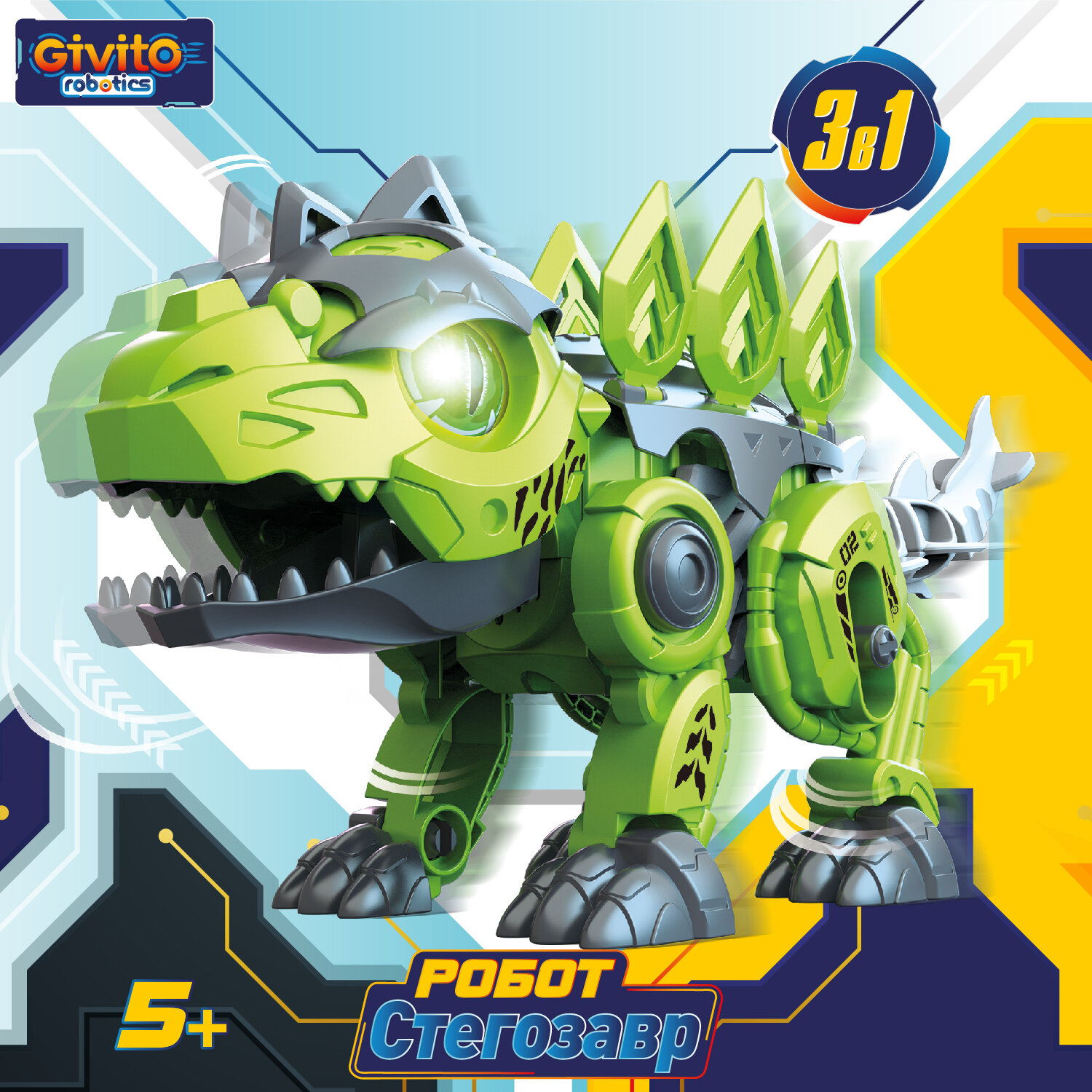 Игрушка робот интерактивный "Динозавр Стегозавр" 3в1 (конструктор 27 деталей, свет, звук). Серия: robotics G2411-487 информация: