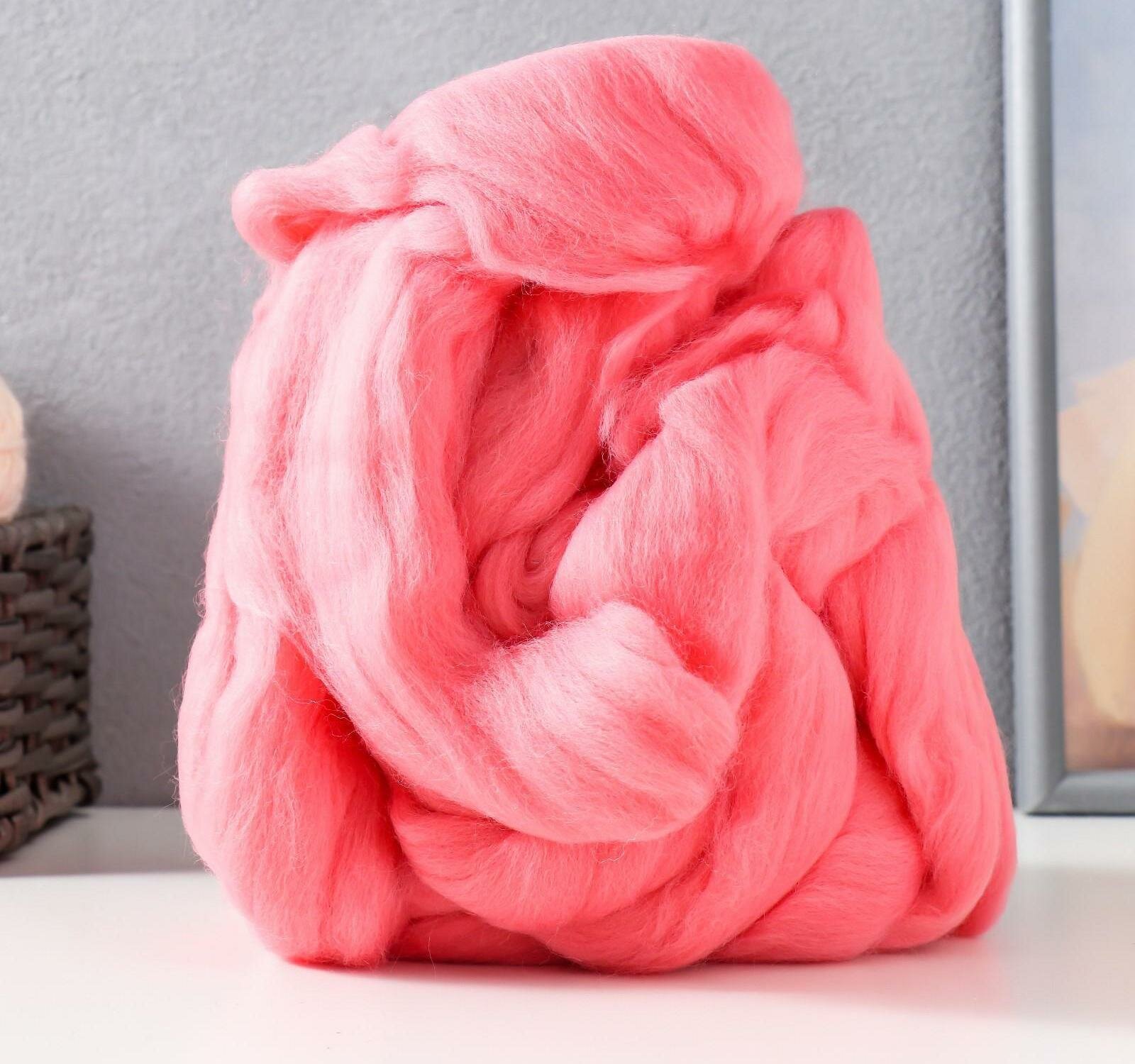 Шерсть для валяния полутонкая 100%, Пряжа из Троицка, 100 г (180 светлая бегония) 350 ₽