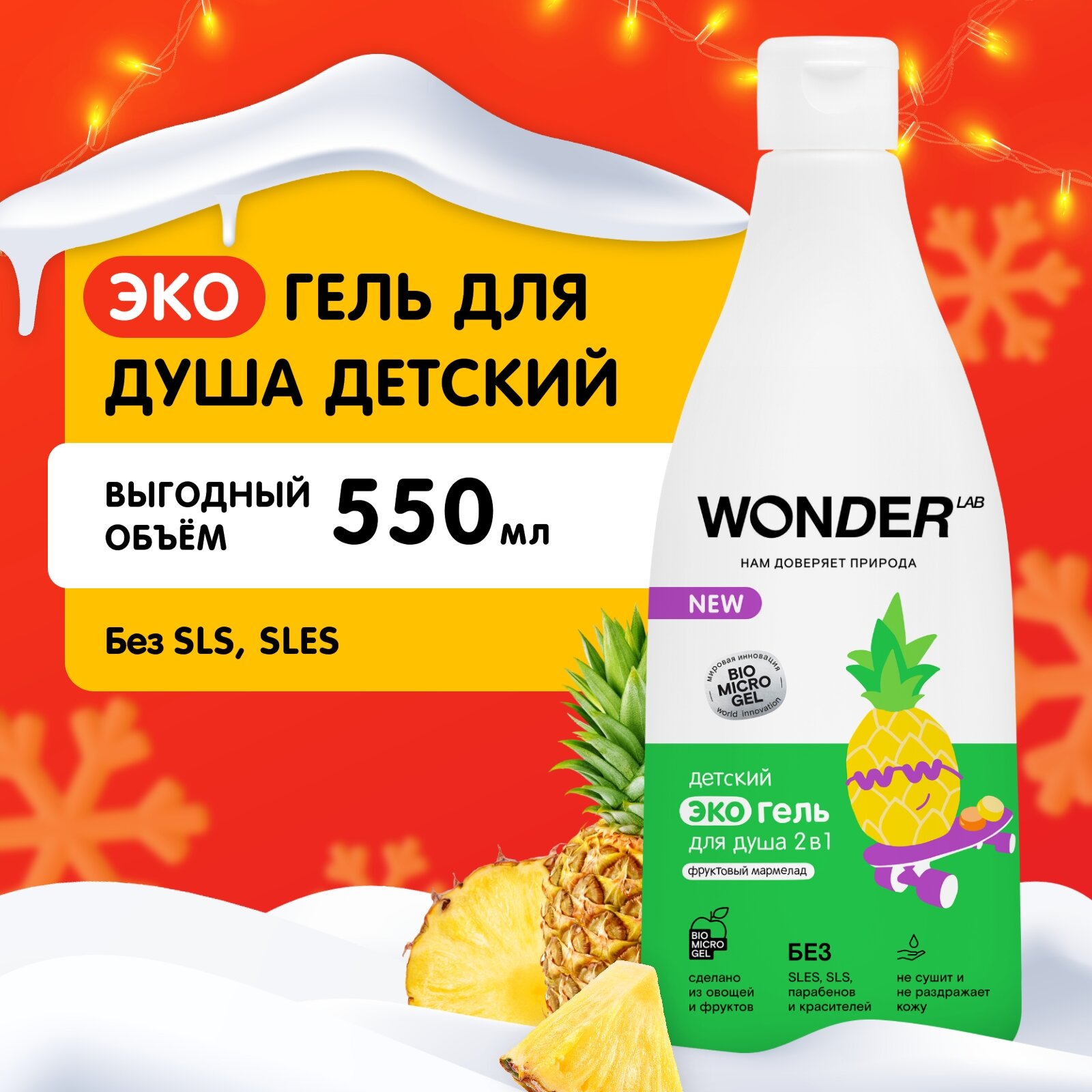 Детский эко гель 2в1 для купания детей WONDER LAB "Фруктовый мармелад", 550 мл, гель и шампунь для душа информация: