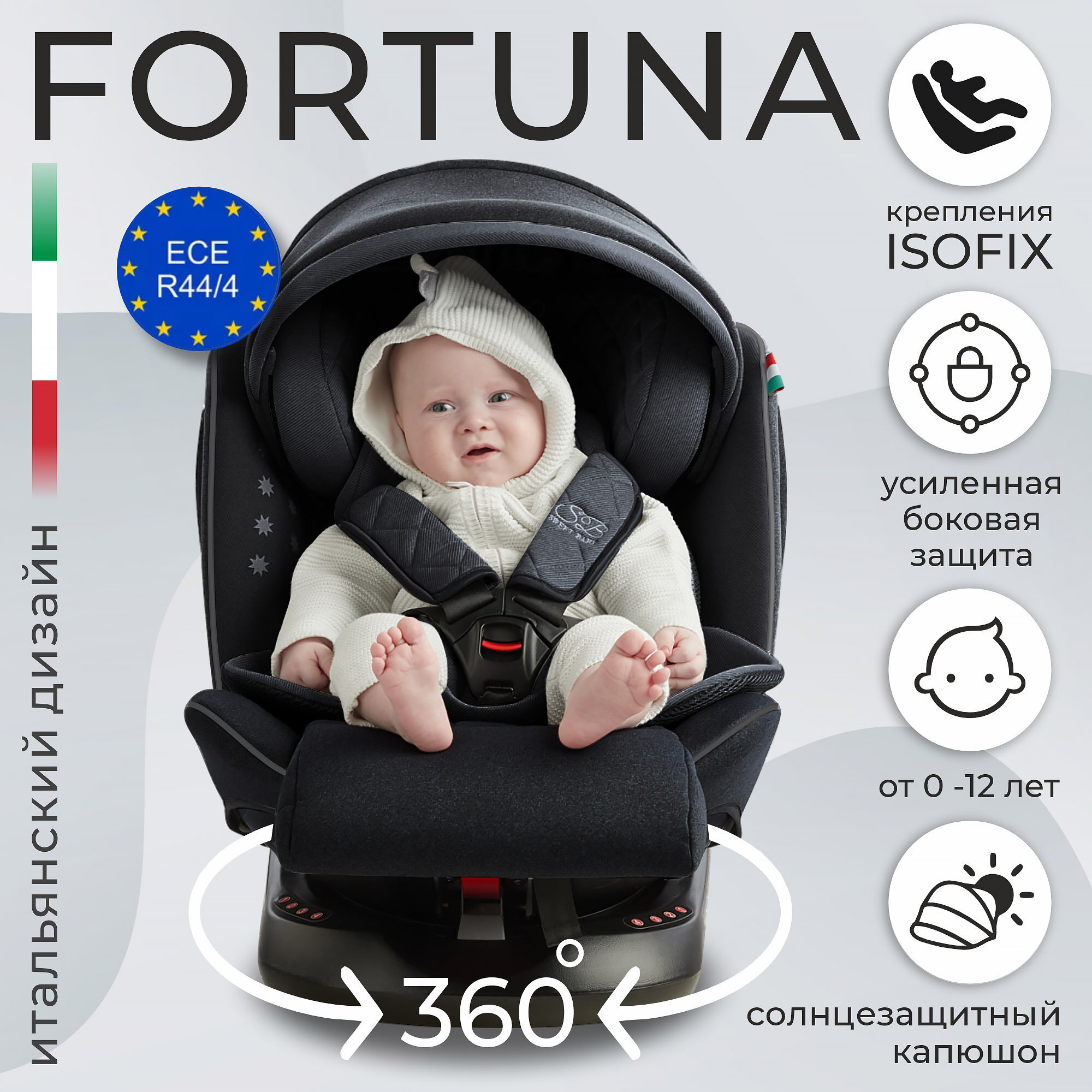 поворотное Fortuna 360 Isofix Black 12 714 ₽