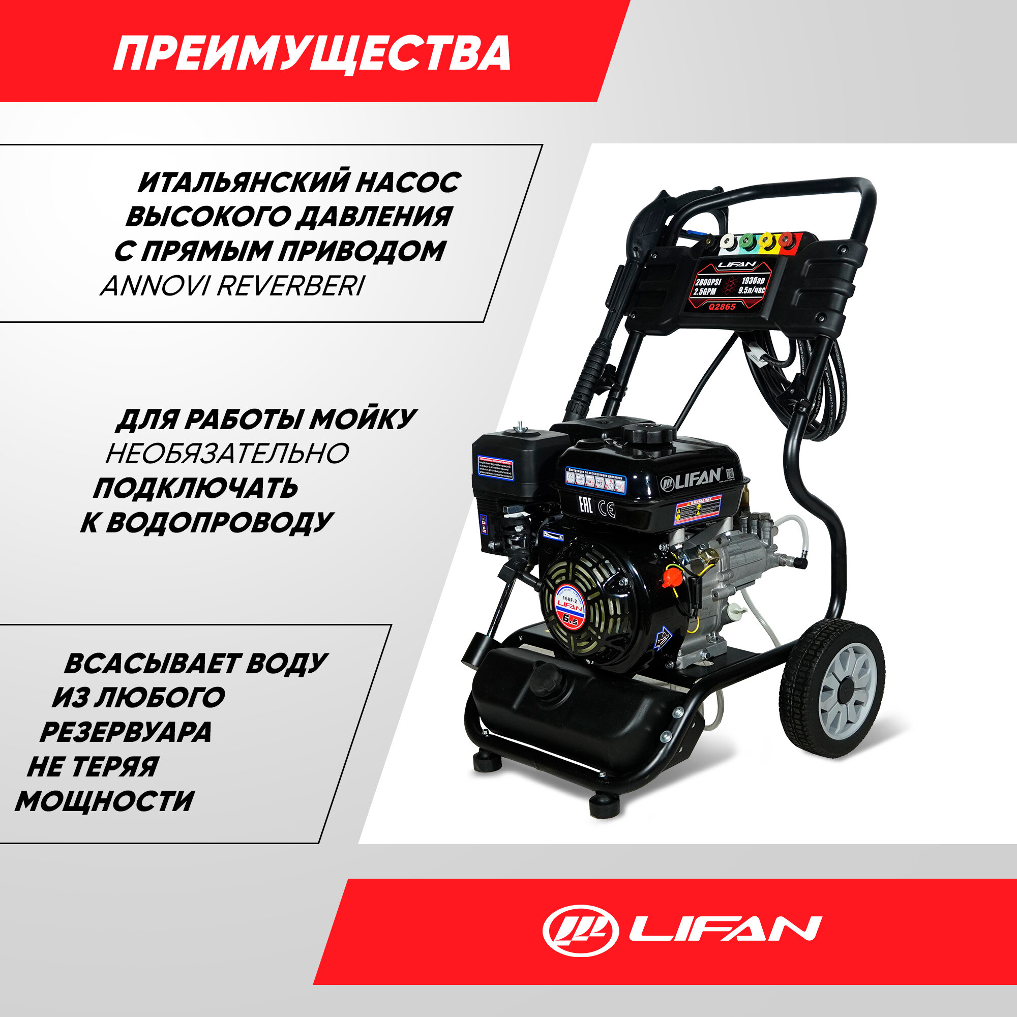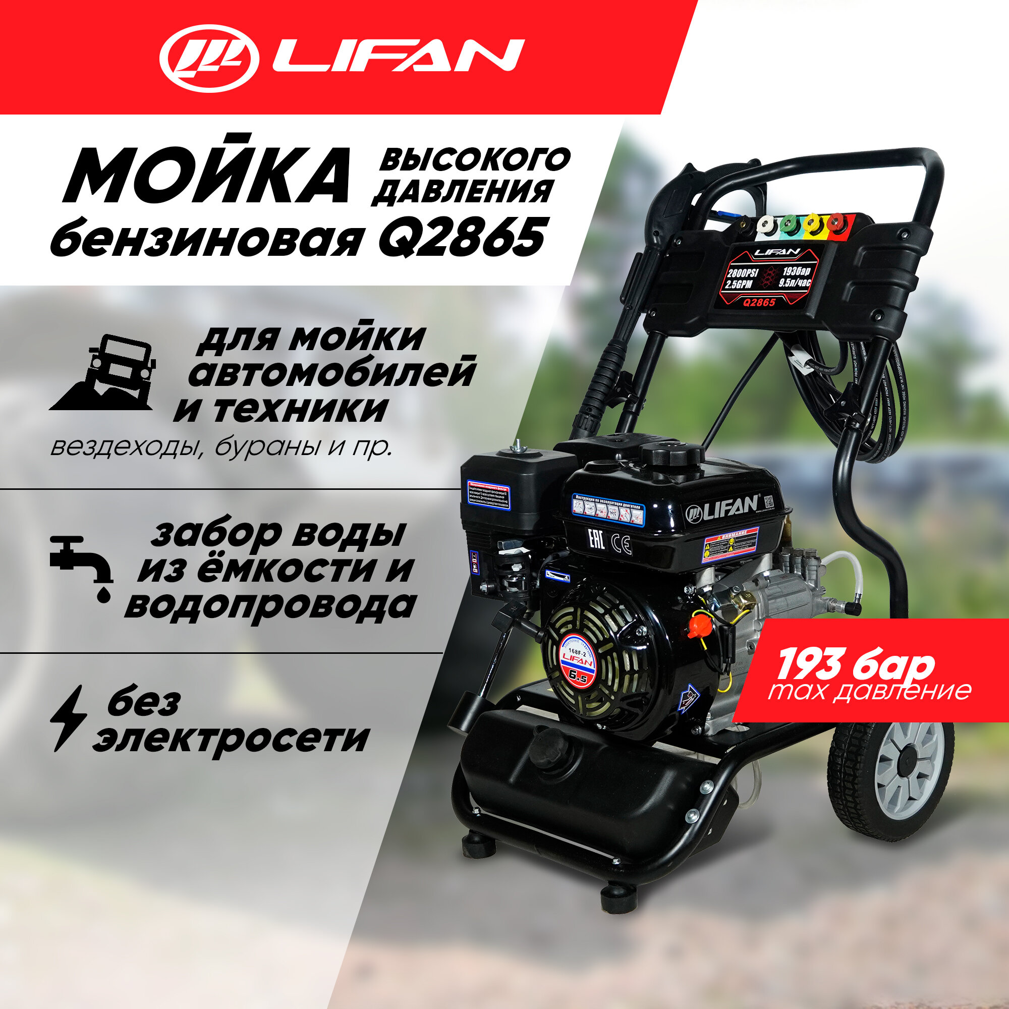Мойка высокого давления бензиновая Lifan Q2865 (Lifan 168F-2B, 193 бар, 570 л/ч) информация: