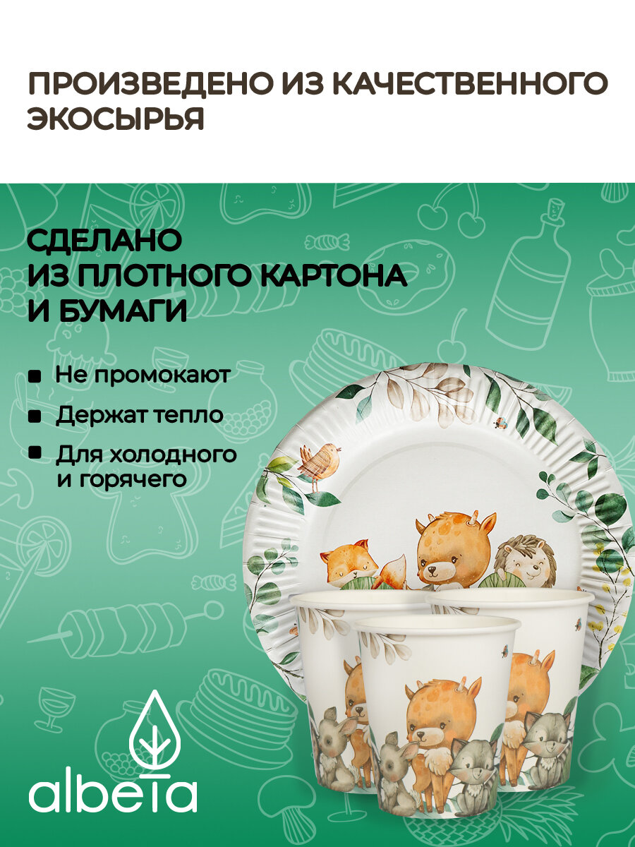 Отзывы на Набор одноразовой посуды для пикника и праздника на 12 персон детский, принт "Лесные звери"