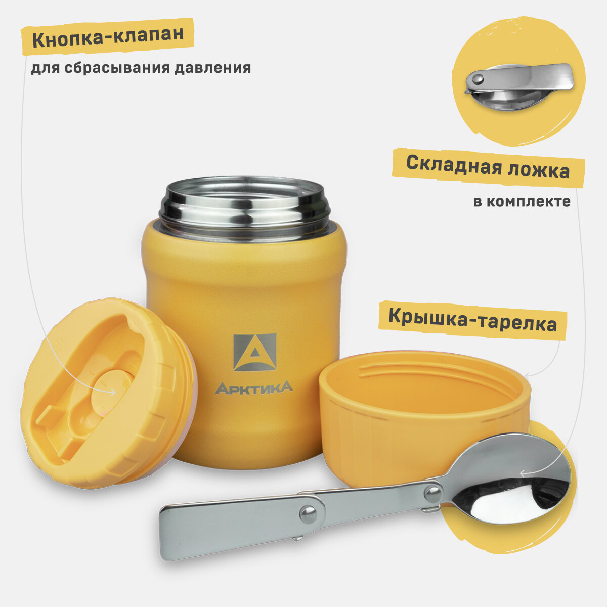 Термос для еды вакуумный Арктика, 0.5 л, 311-500, жёлтый 3 310 ₽