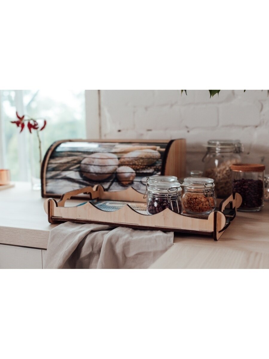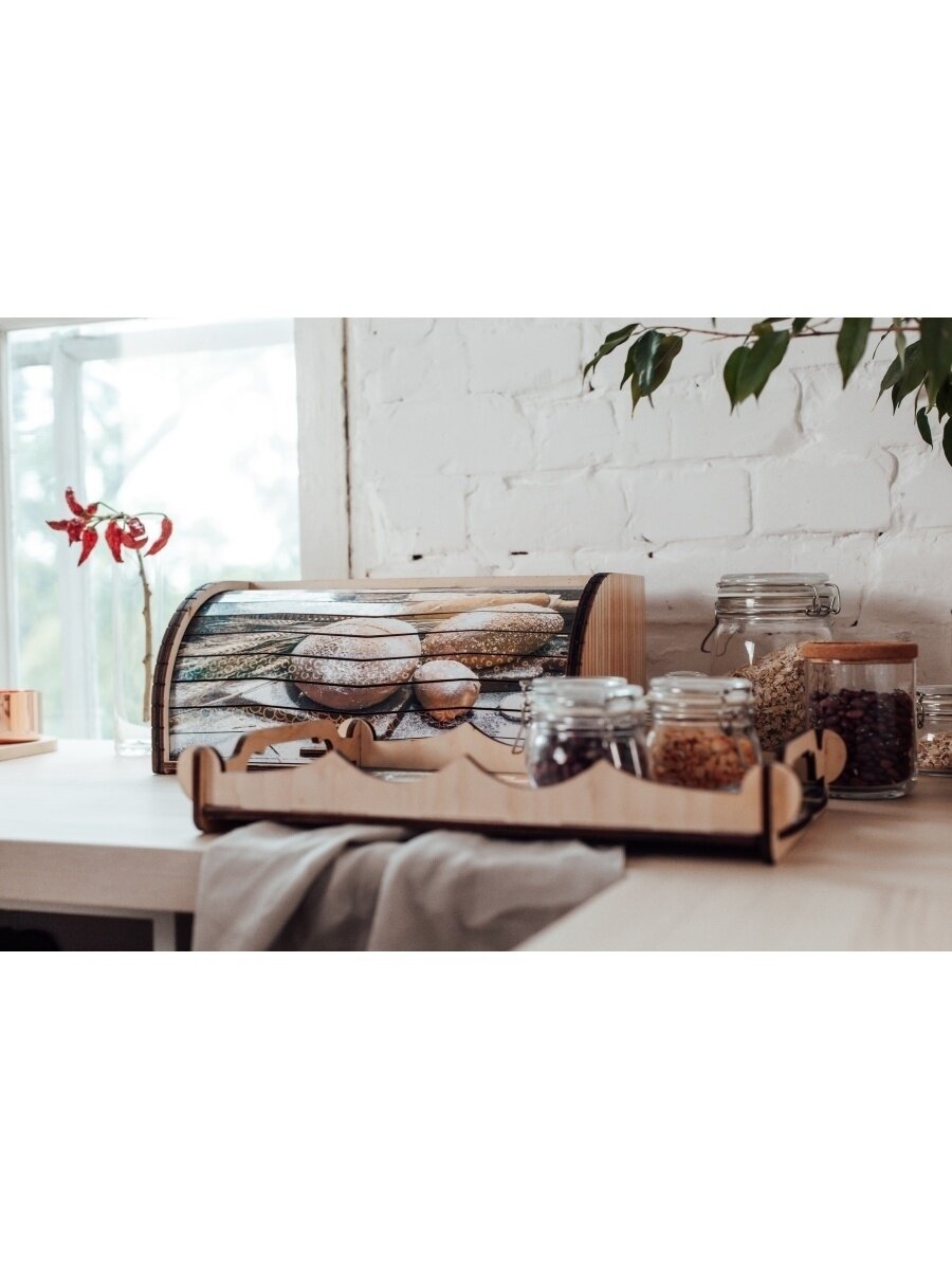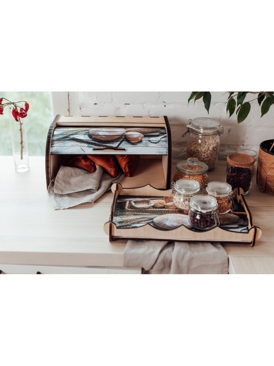Хлебница "Домашний хлеб" с подносом из березы информация: