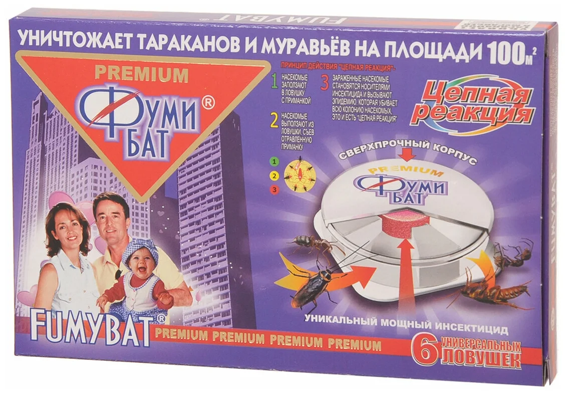 Ловушка Фумибат Premium для уничтожения тараканов и муравьев, 6 шт. информация: