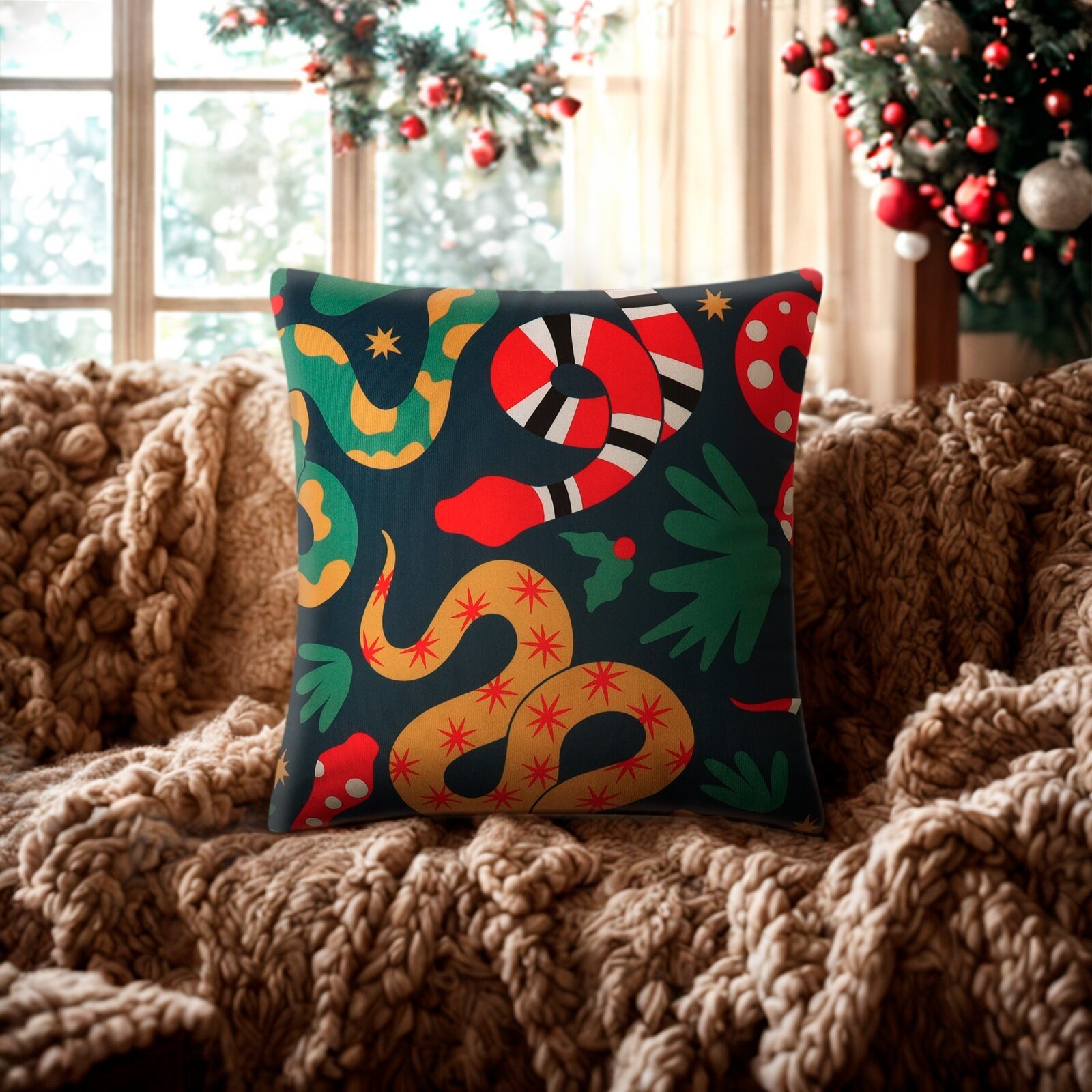 Новый год. Символ года. Змея. Подушка Этель "Snakes" 40х40 см, 100% п/э, велюр 558 ₽