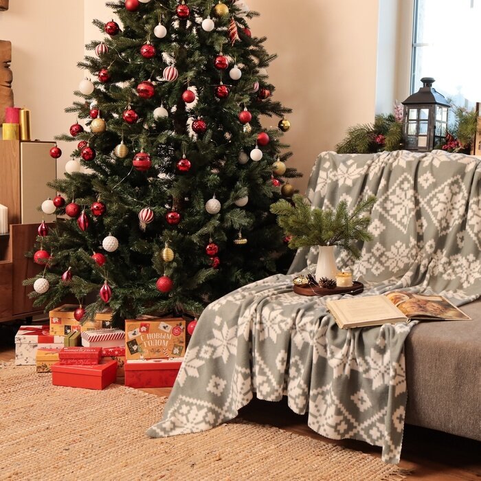 Новый год. Плед Экономь и Я "Новогодний узор" 150*180см, пл.160 г/м2, 100% п/э 940 ₽