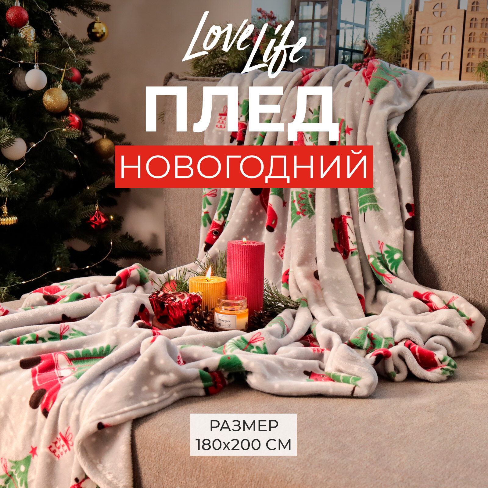 10 цен на Новый год. Плед LoveLife "Новогоднее настроение" 180*200 см,100% п/э, велсофт 280 гр/м2
