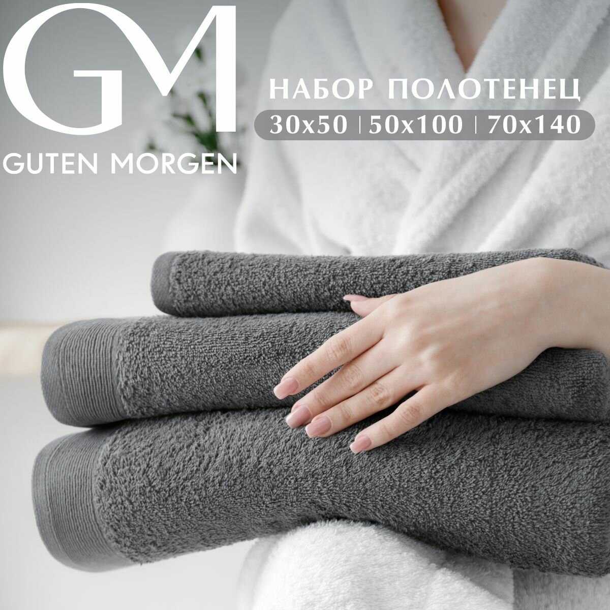 10 цен на Набор полотенец махровых, Guten Morgen 3 шт. 30х50, 50х100, 70х140, хлопок 100%, 500 г/м2, Графит