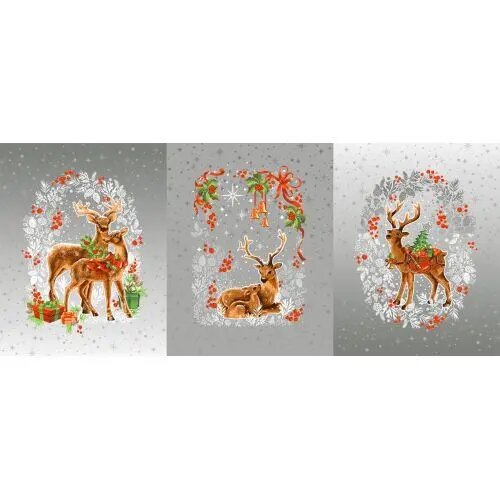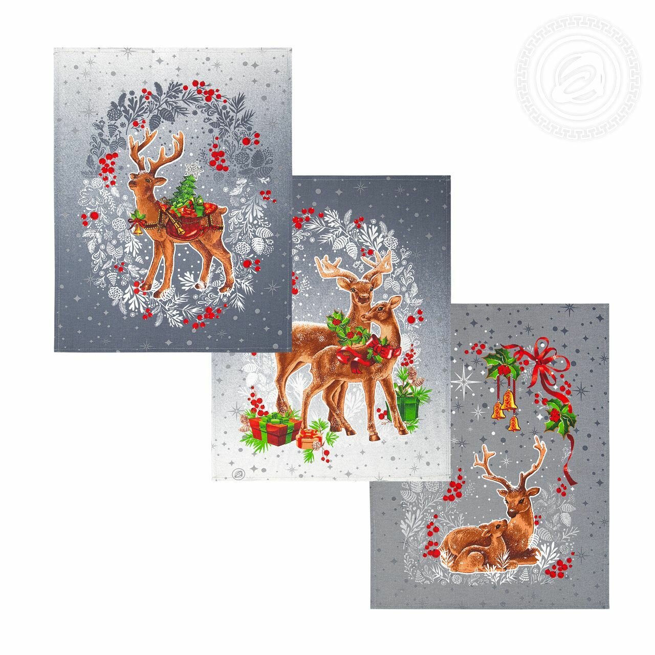10 цен на Набор кухонных полотенец "Новый год" из рогожки 50x60, 3 шт, серый с оленями