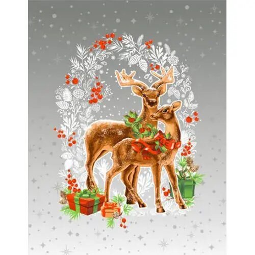 Набор кухонных полотенец "Новый год" из рогожки 50x60, 3 шт, серый с оленями информация: