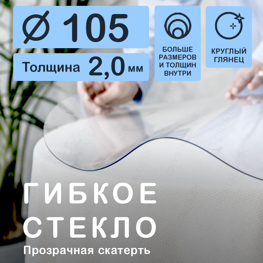 Гибкое стекло на стол, прозрачная круглая скатерть, CrystalDesk, диаметр 105 см, ПВХ, толщина 2 мм информация: