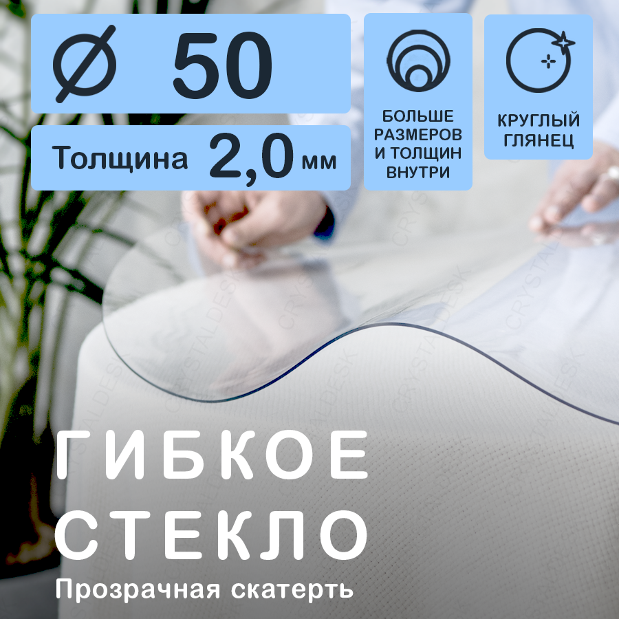 Гибкое стекло на стол, прозрачная круглая скатерть, CrystalDesk, диаметр 50 см, ПВХ, толщина 2 мм информация: