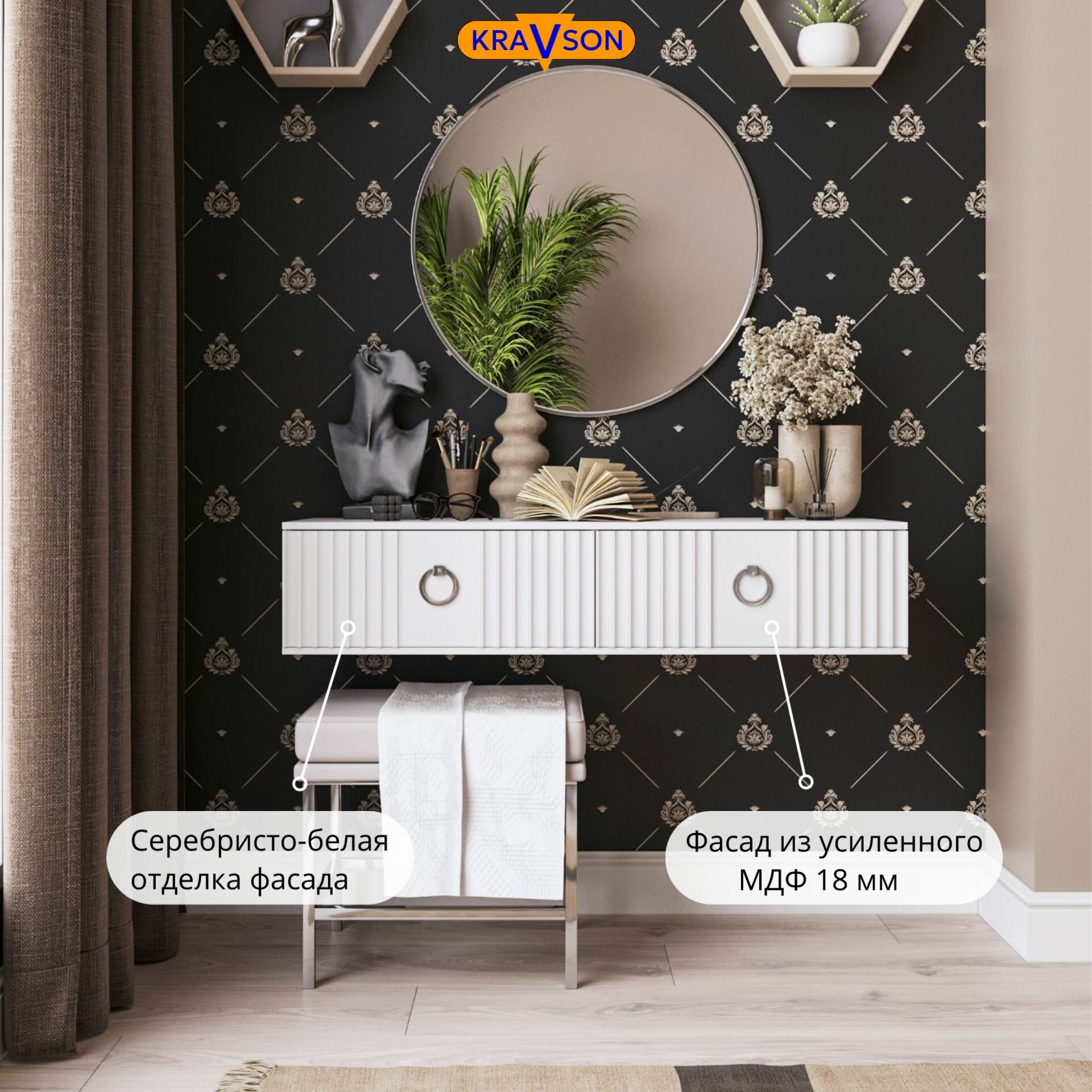Столик туалетный белый подвесной с двумя ящиками, 90х30х22 см информация: