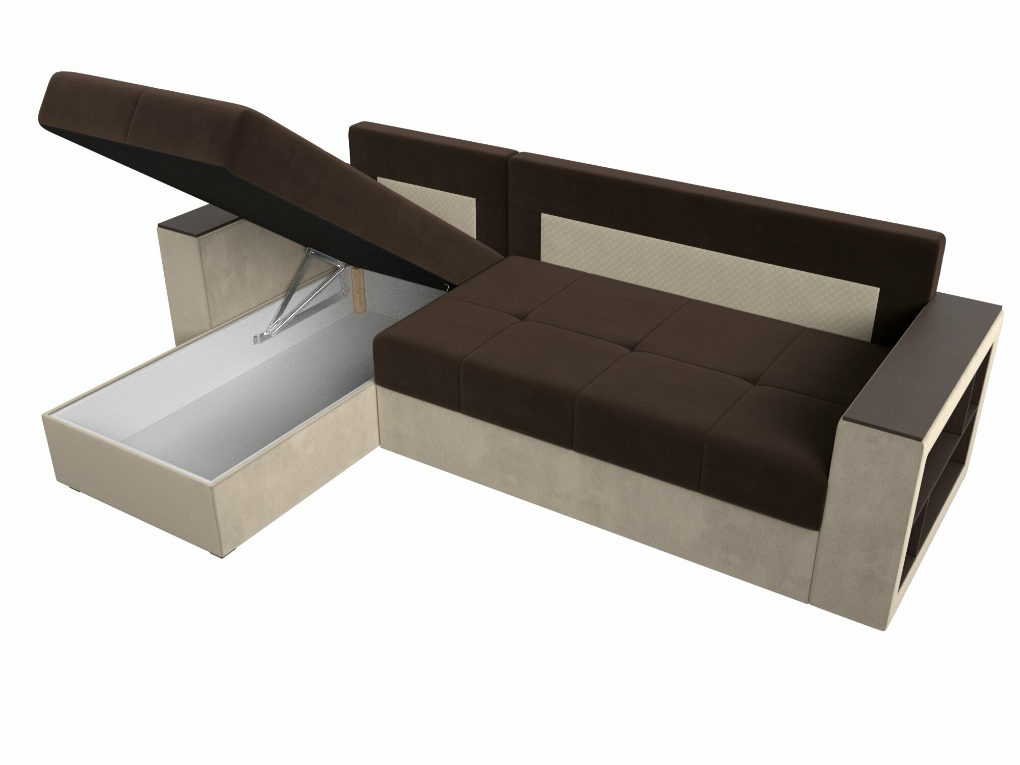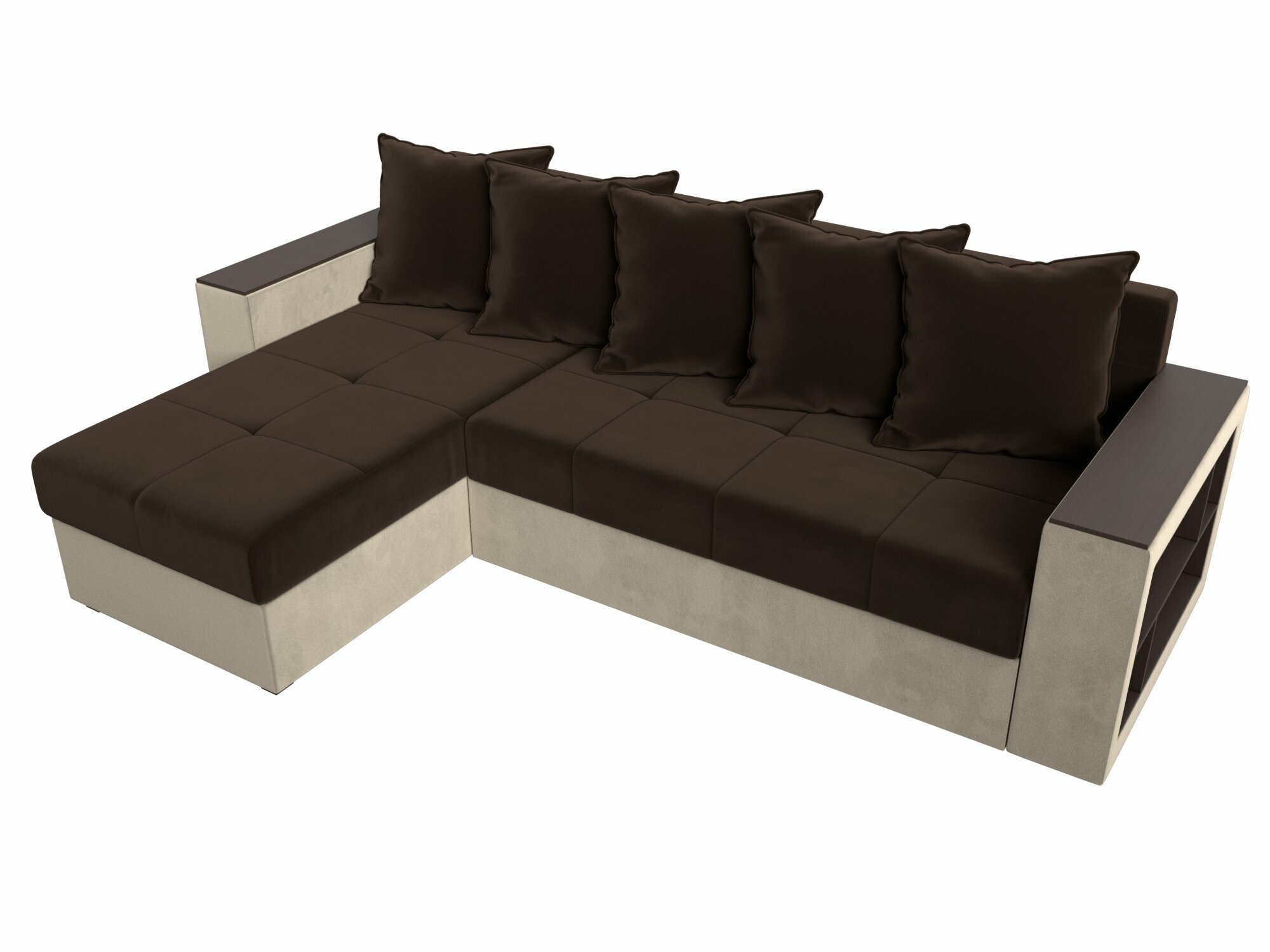 10 цен на Диван угловой Дубай Лайт левый угол, микровельвет, механизм еврокнижка, коричневый, модель 114173L