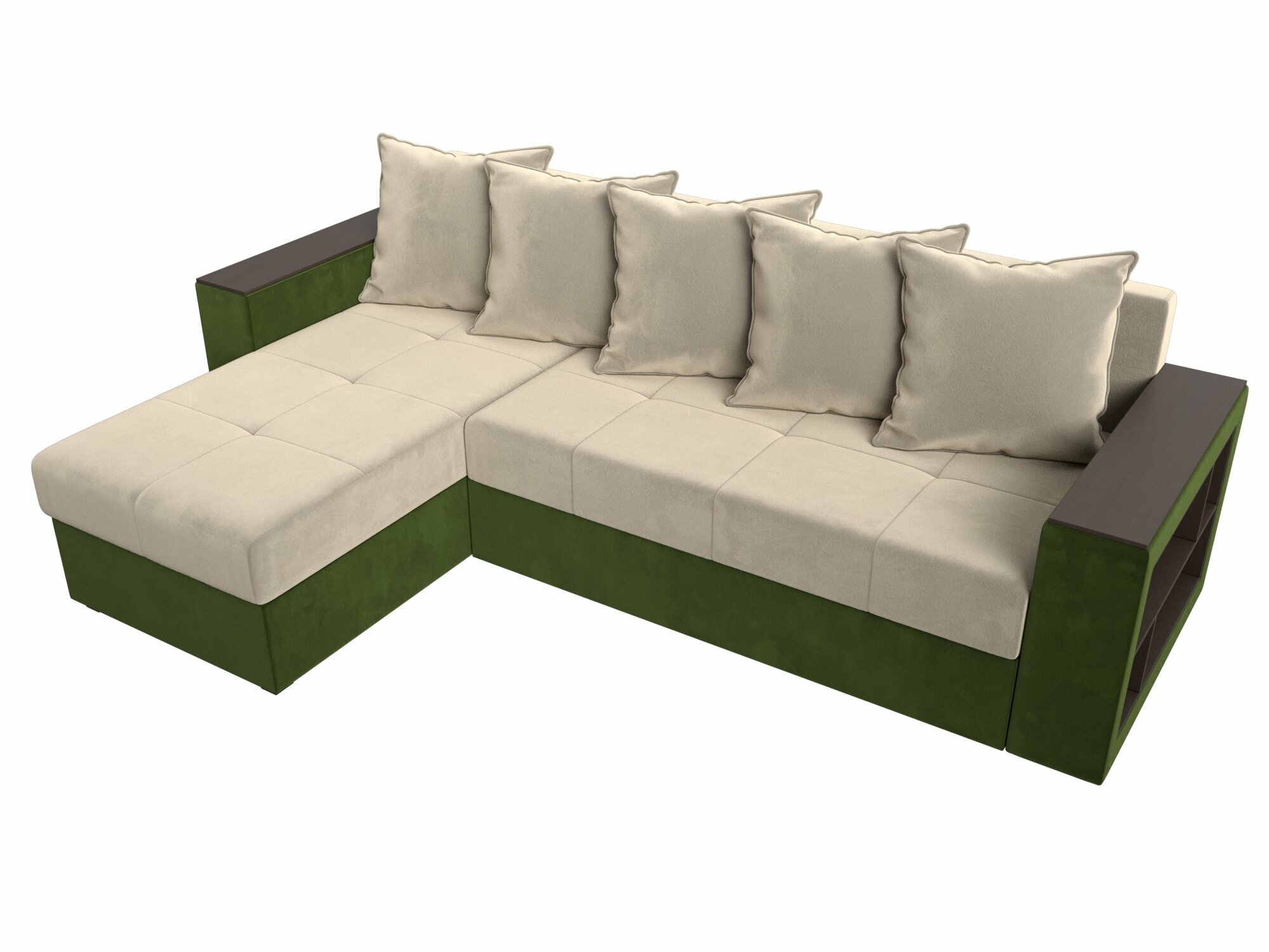 10 цен на Диван угловой Дубай Лайт левый угол, микровельвет, механизм еврокнижка, бежевый, модель 114178L