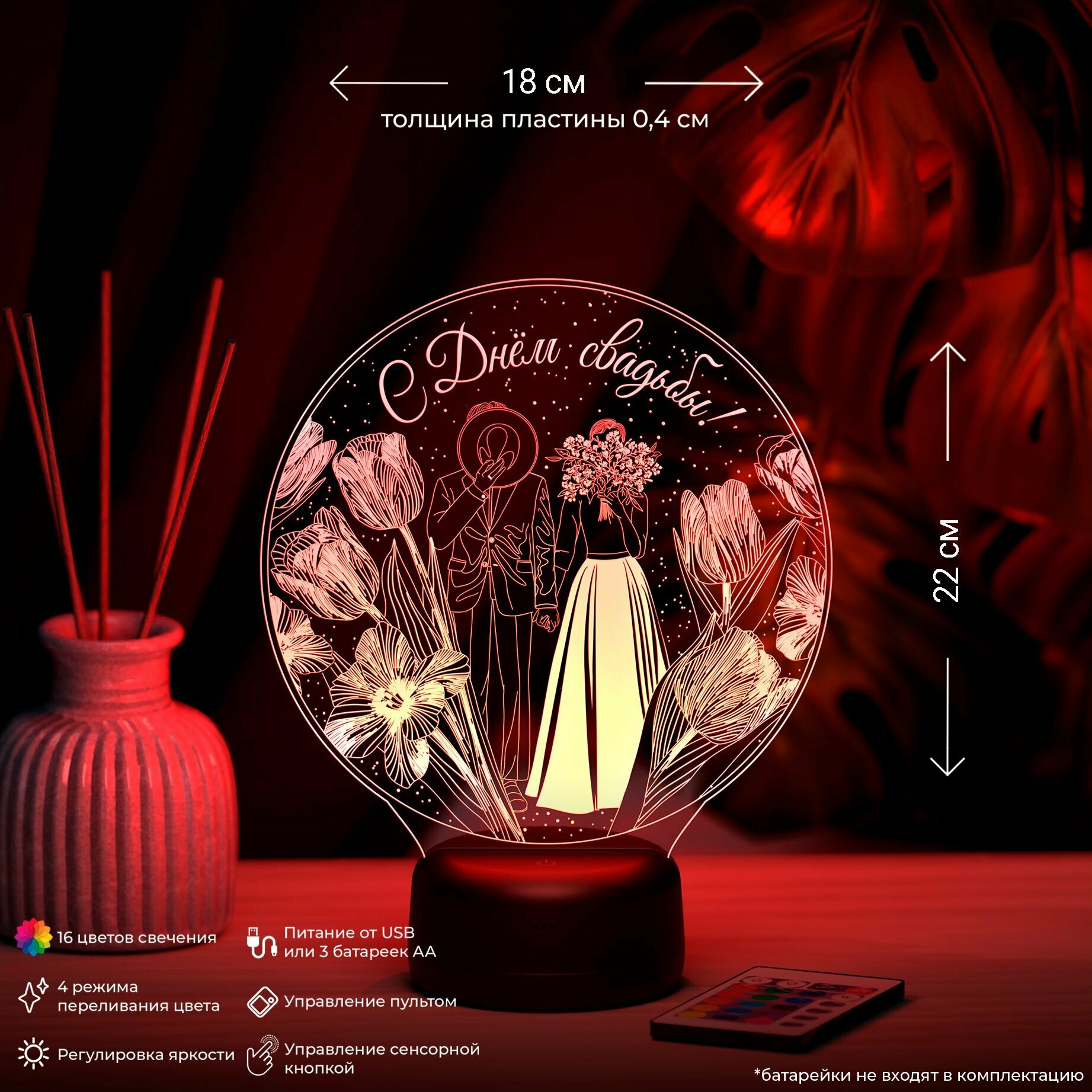 10 цен на Ночник "Свадебная пара в цветах" С Днем Свадьбы