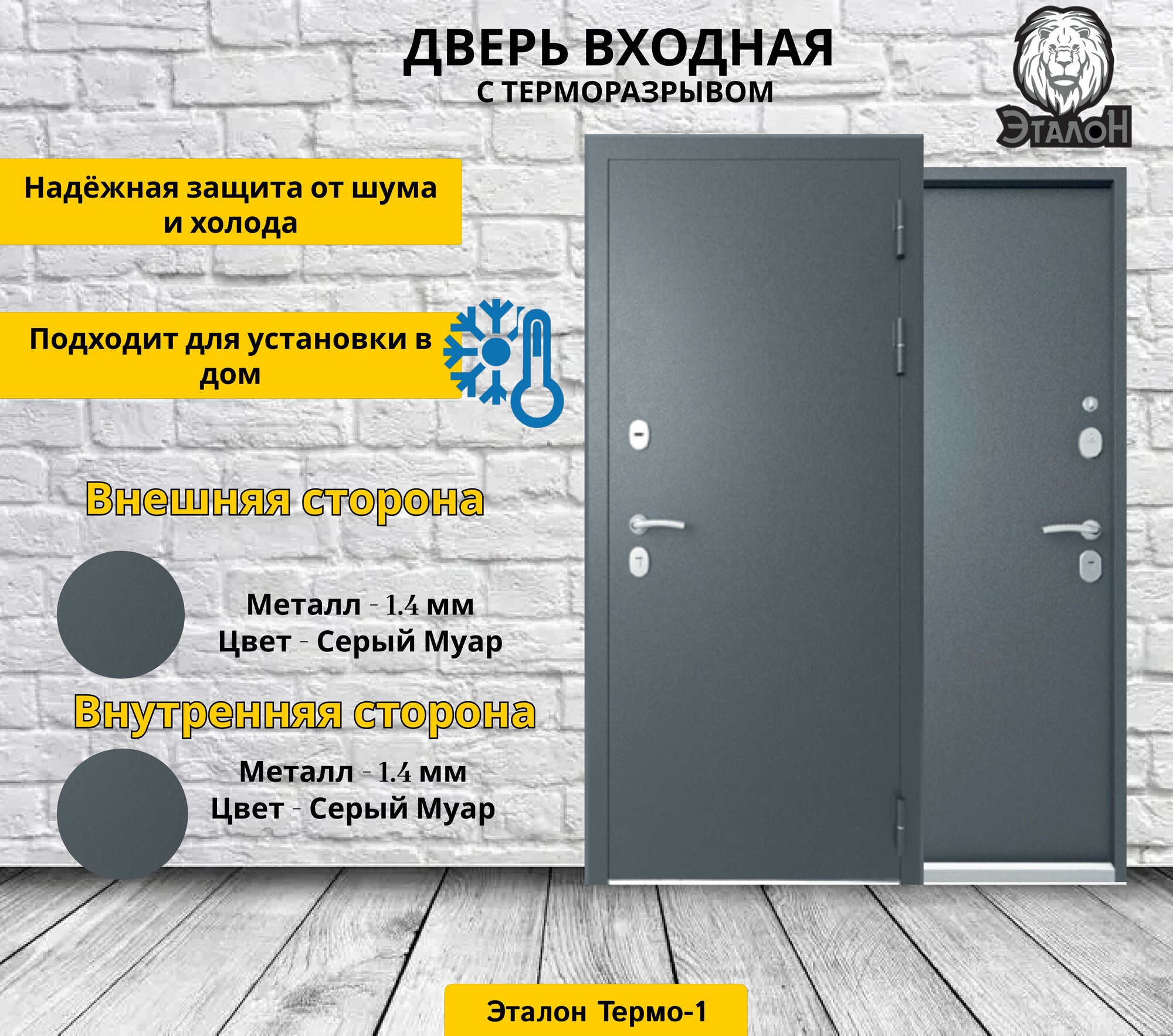 Дверь стальная Эталон Термо-1 Серый муар-Серый муар 860 левая (терморазрыв) информация: