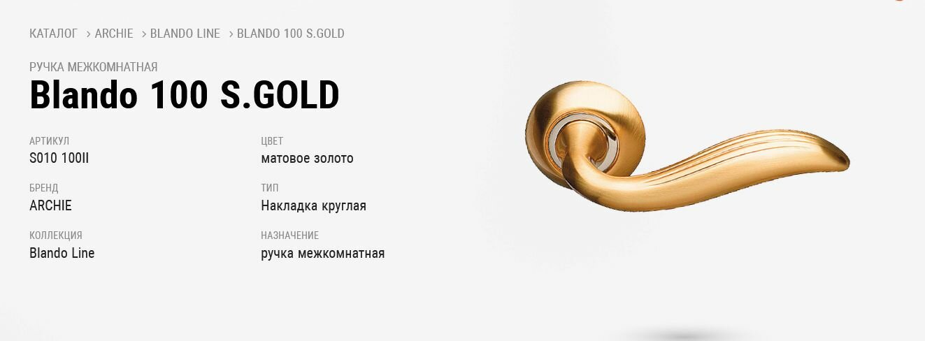 Ручка межкомнатная ARCHIE S010 100II Blando Line матовое золото 7 081 ₽