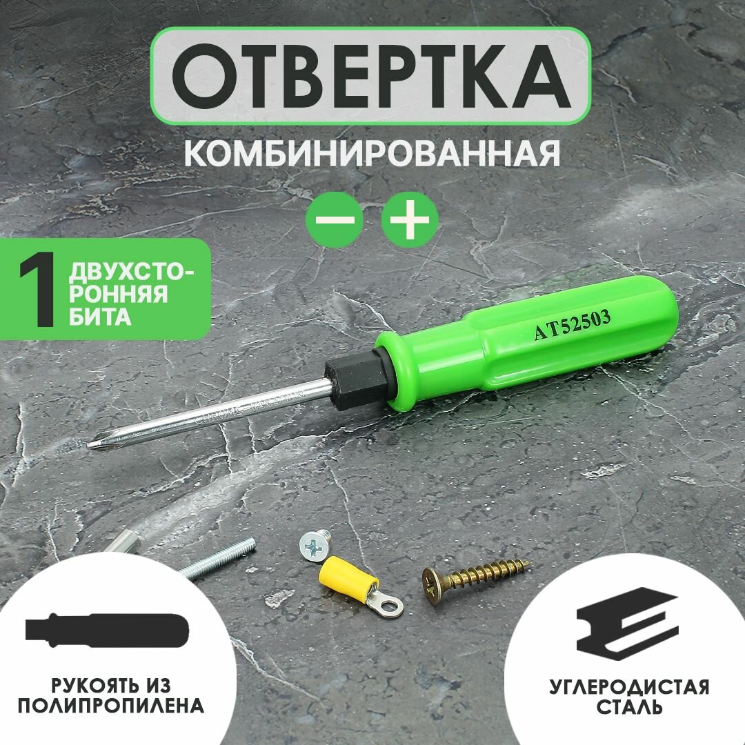 Отвертка комбинированная "АТ"100мм (РН1-SL5мм PH2-SL6мм) AT52317