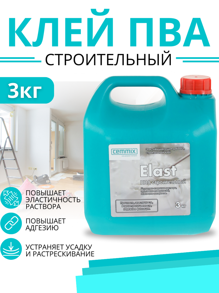 CEMMIX Эласт клей ПВА строительный (3кг) / CEMMIX Elast клей ПВА строительный эластифицирующая добавка (3кг) информация: