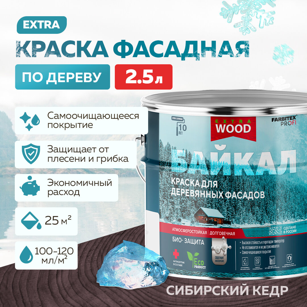 Краска для деревянных фасадов "Байкал" Сибирский кедр 2,5л FARBITEX PROFI WOOD EXTRA информация: