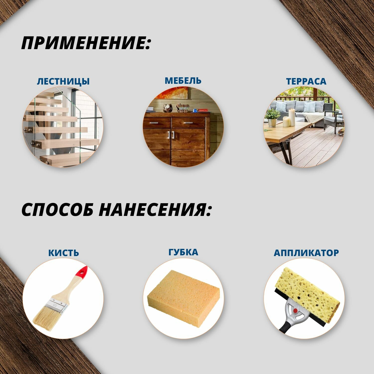 | Область применения | для мебели / для паркета / для пола / для ступеней / для фасадов |