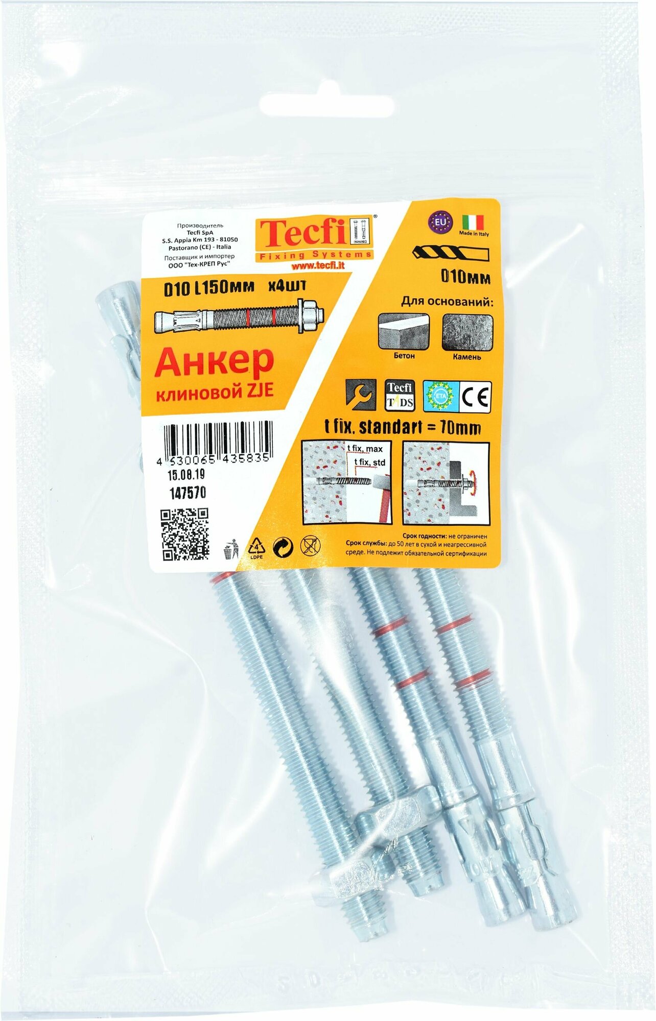 | Комплектация | Анкер клиновой Tecfi ZJE ZN10x150 4 шт |
