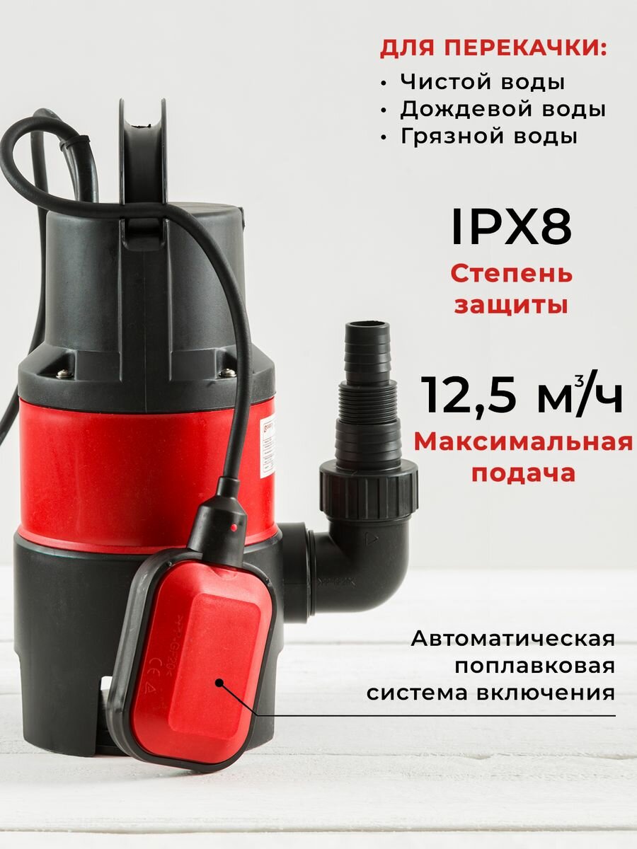 Насос погружной дренажный для грязной воды Garden Life 750Вт, 210 л/мин, напор 8 м информация: