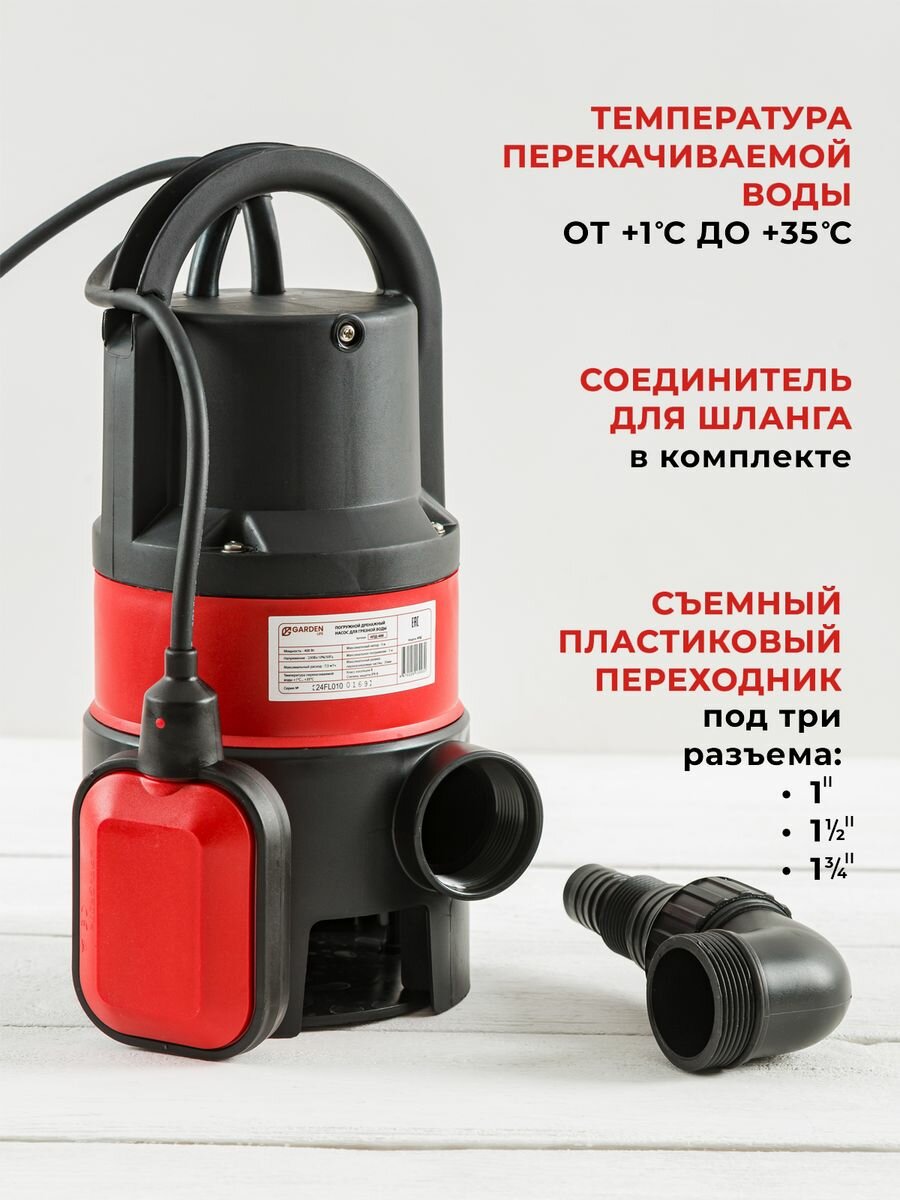 Насос погружной дренажный для грязной воды Garden Life 400Вт, 125 л/мин, напор 5 м информация: