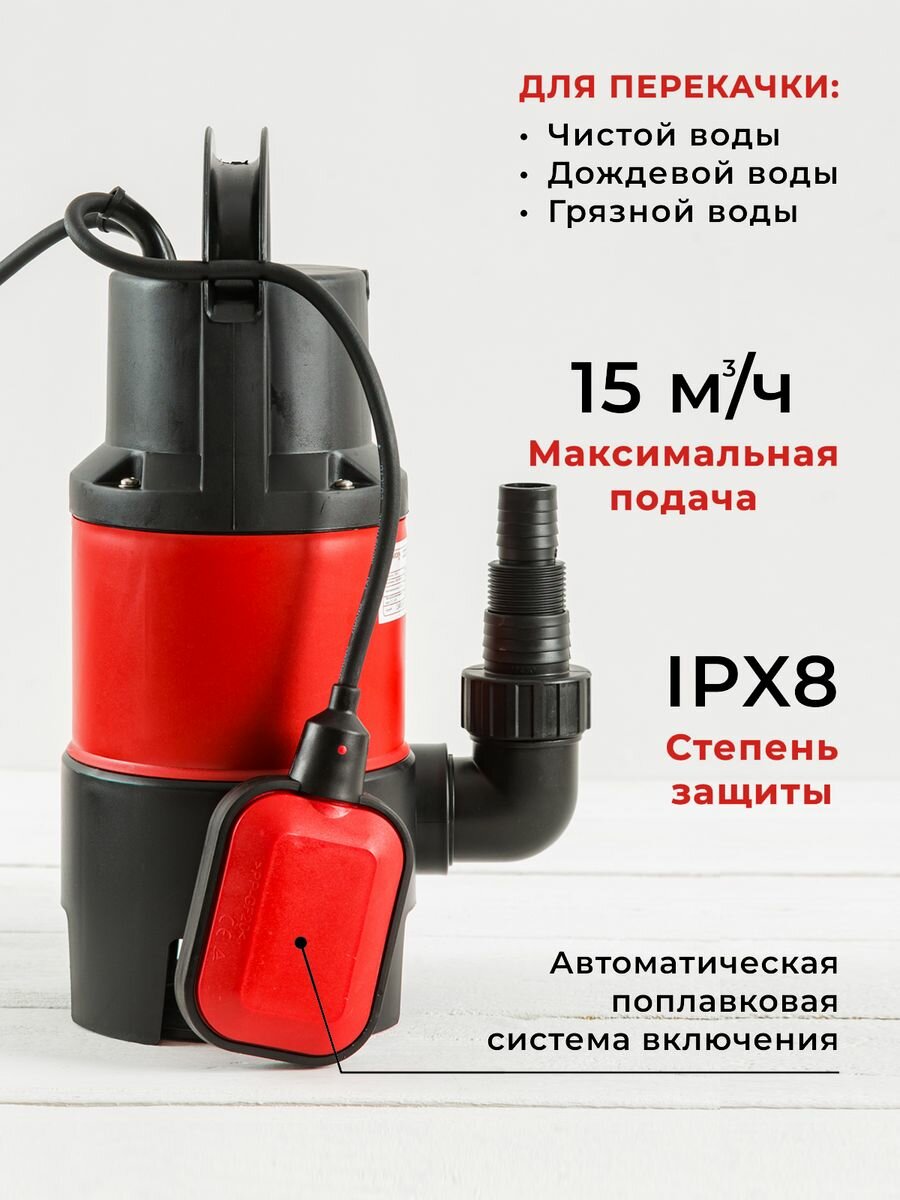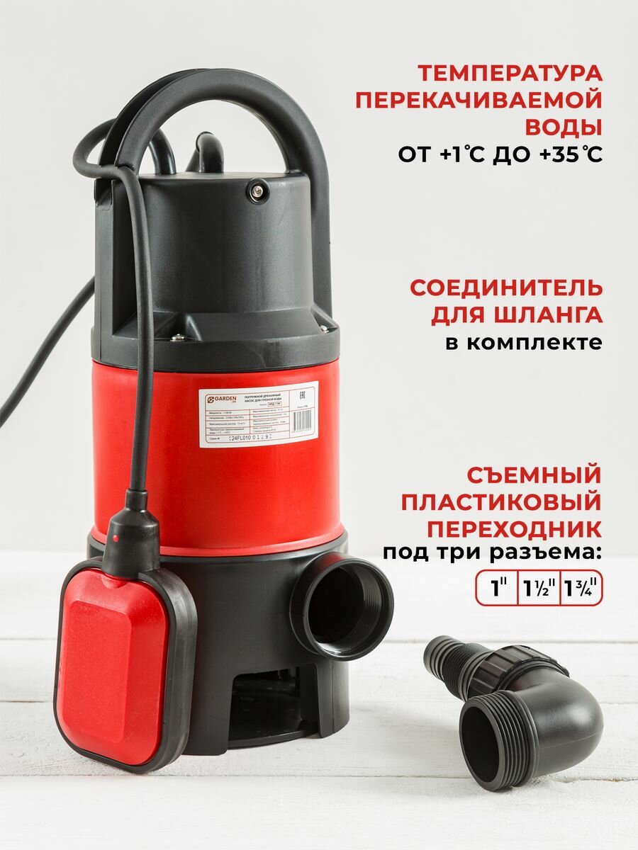 Насос погружной дренажный для грязной воды Garden Life 1100Вт, 250 л/мин, напор 9,5м информация: