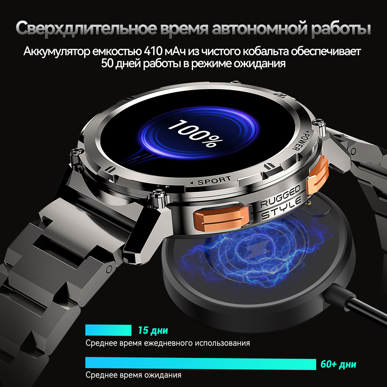Kospet TANK T2 умные/смарт часы Мужские часы военного образца, которые поддерживают погружения на глубину до 50 метров и работают в режиме ожидания до 50 дней.С металлическим браслетом. информация: