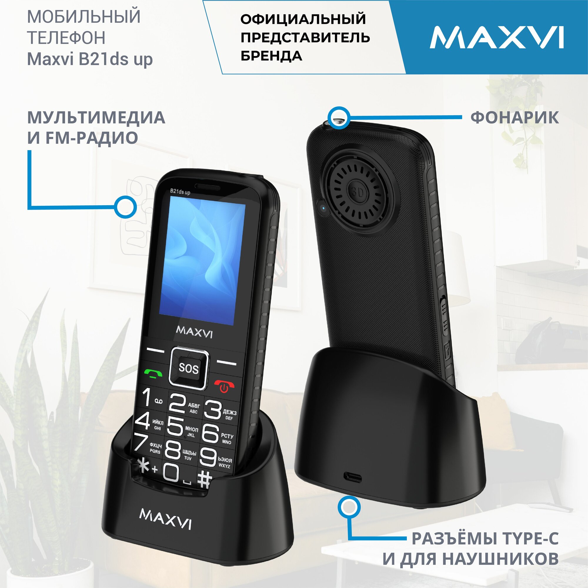 Телефон мобильный кнопочный Maxvi B21ds up черный 2 790 ₽